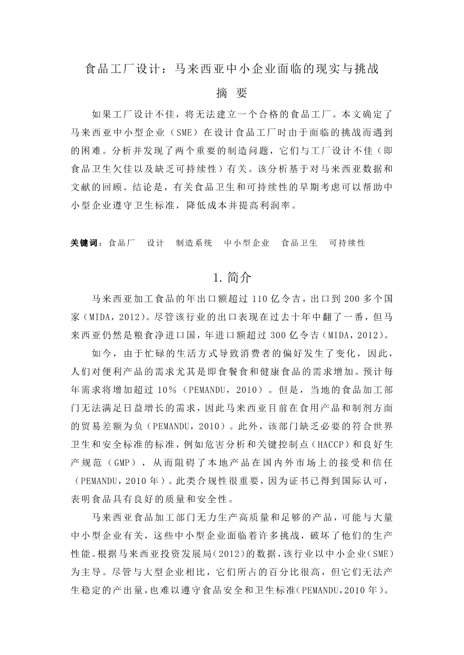食品工厂设计:马来西亚中小企业面临的现实与挑战外文翻译资料