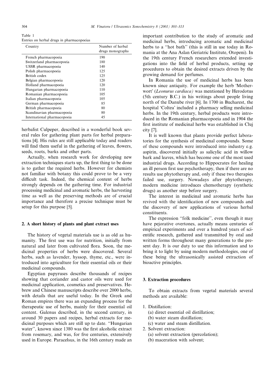 “民间医学”这个词,尽管可能带有贬义,实际上是指几个世纪的经验实验和一百多年的科学研究,通过口头和书面的形式在几代人的时间里收集和传播到今天。我们有责任利用这些信息,并通过现代方法将其公之于众,其中之—就是超声波辅助提取生物活性成分。