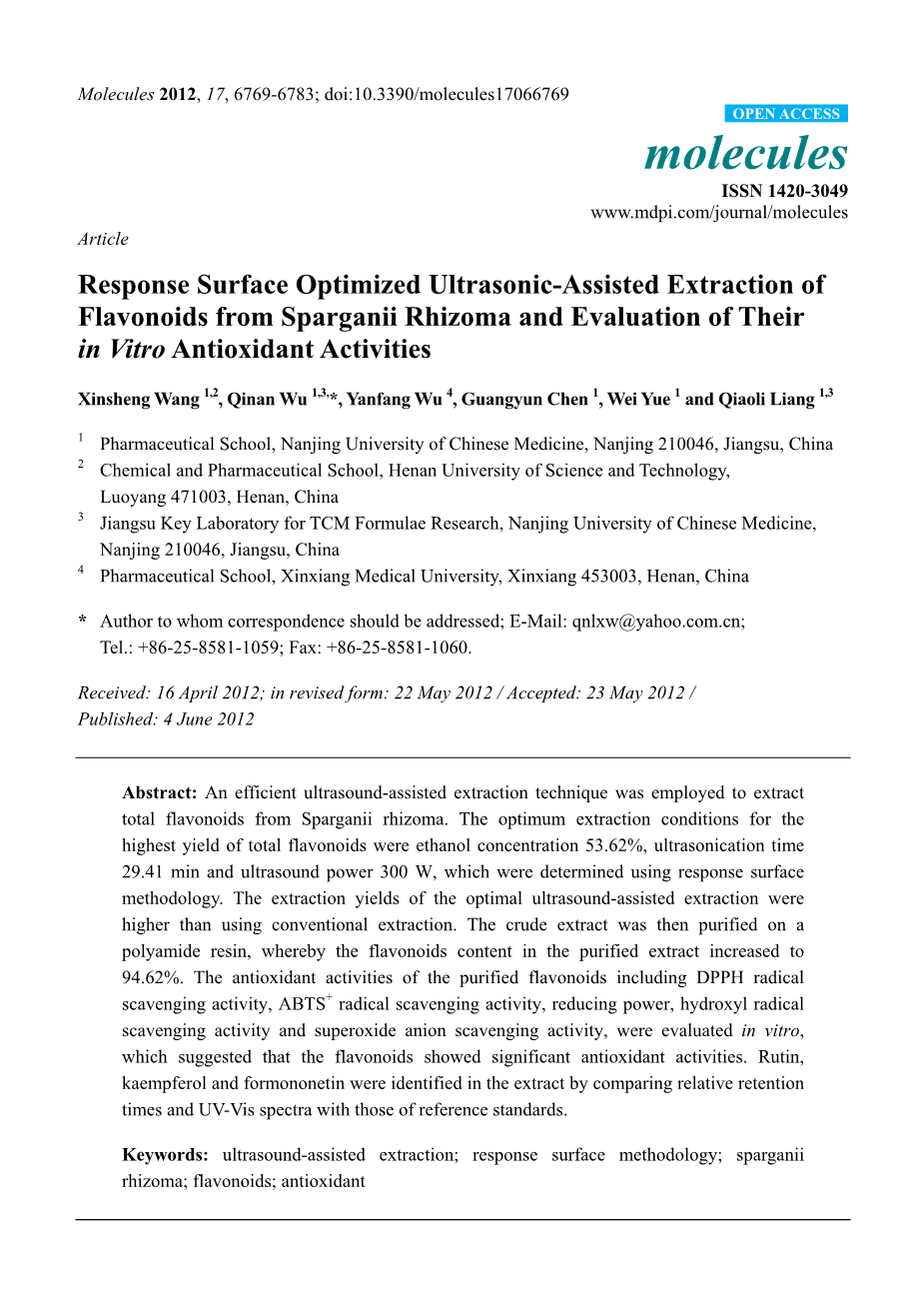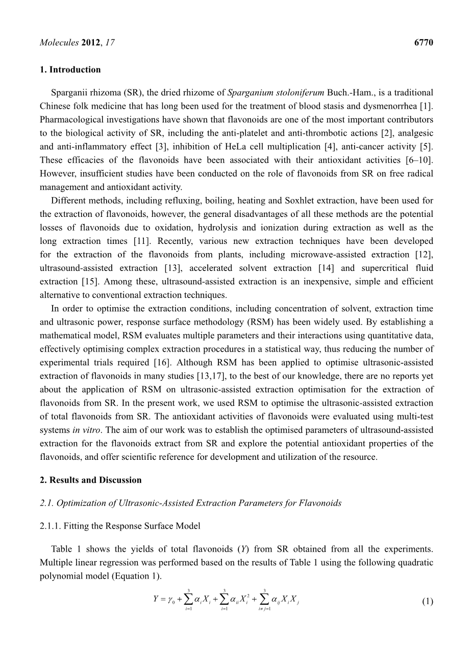 响应面优化超声波辅助提取三棱总黄酮及其体外抗氧化活性评价外文翻译资料