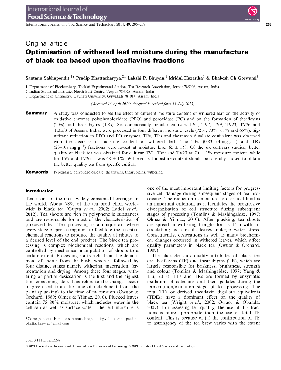 原文作者 Santanu Sabhapondit,* Pradip Bhattacharyya,* Lakshi P. Bhuyan,Mridul Hazarika amp; Bhabesh Ch Goswami