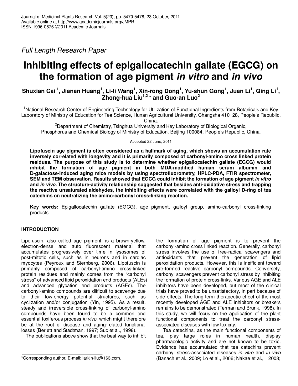 表没食子儿茶素没食子酸酯(EGCG)对体内和体外老年色素形成的抑制作用外文翻译资料