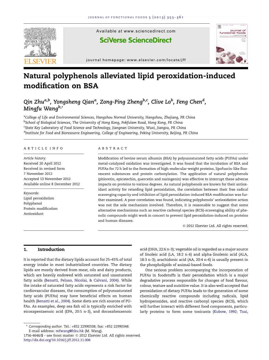 天然多酚缓解脂质过氧化反应引起的对BSA的修饰外文翻译资料