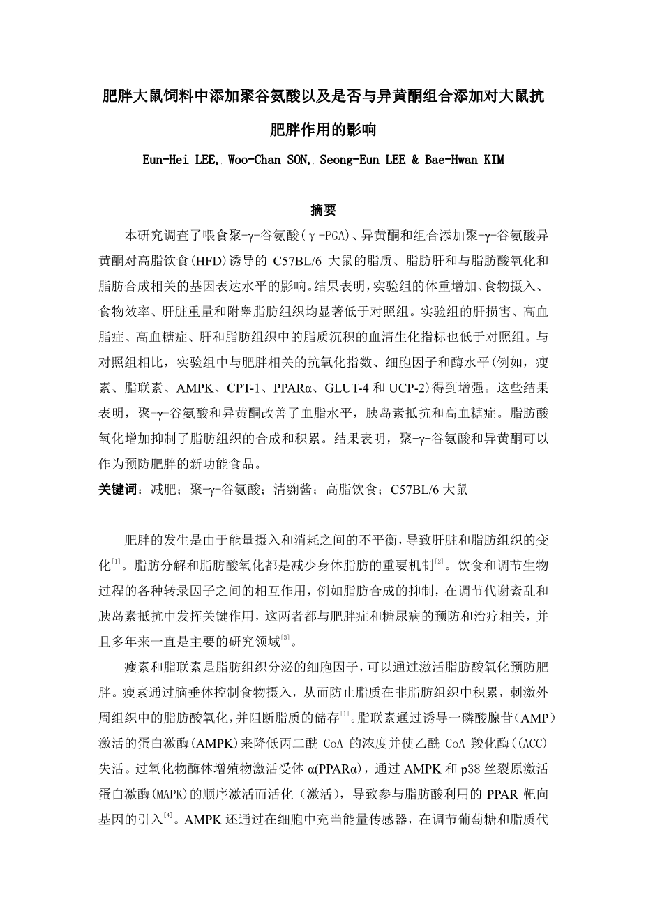 肥胖大鼠饲料中添加聚谷氨酸以及是否与异黄酮组合添加对大鼠抗 肥胖作用的影响外文翻译资料