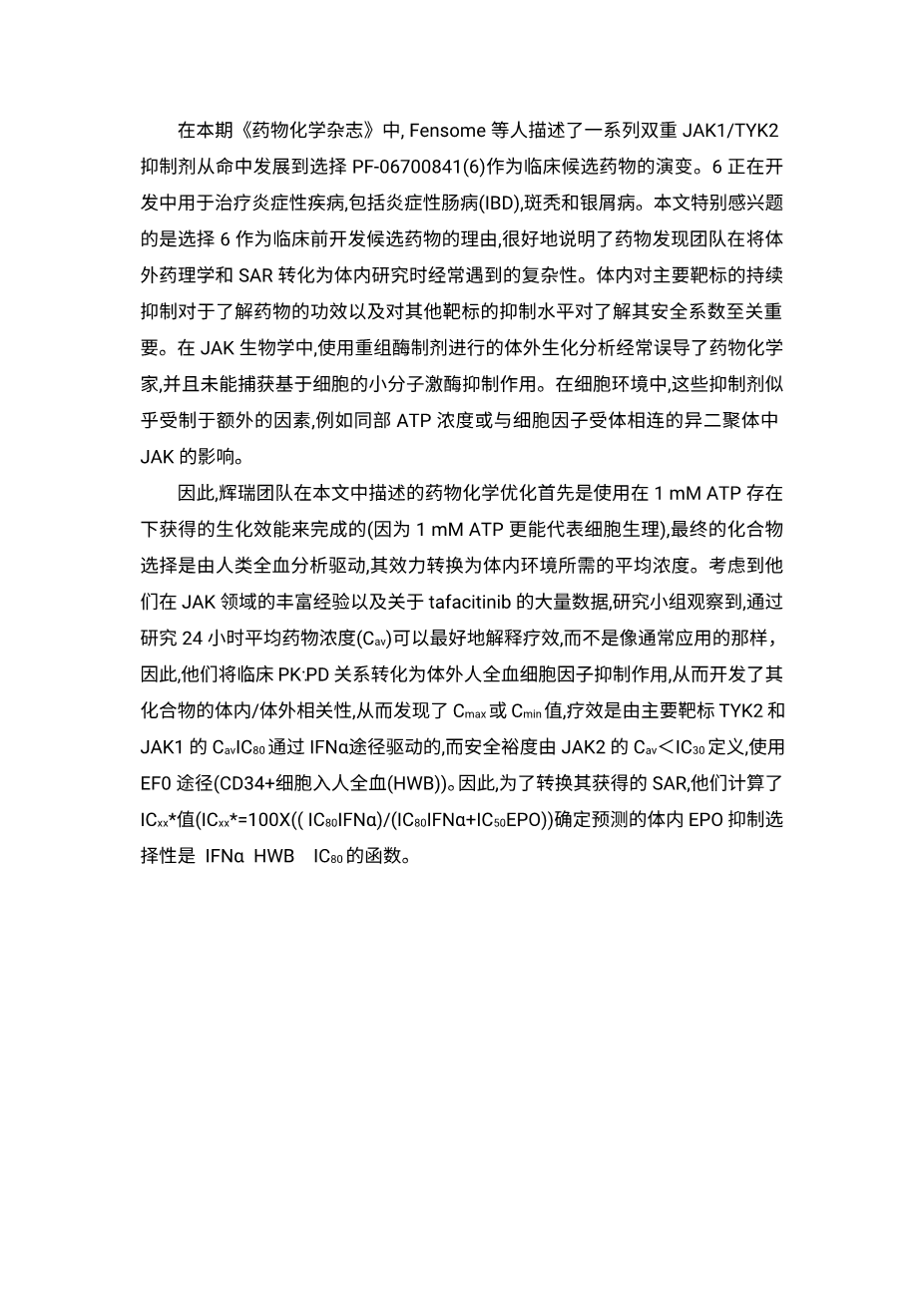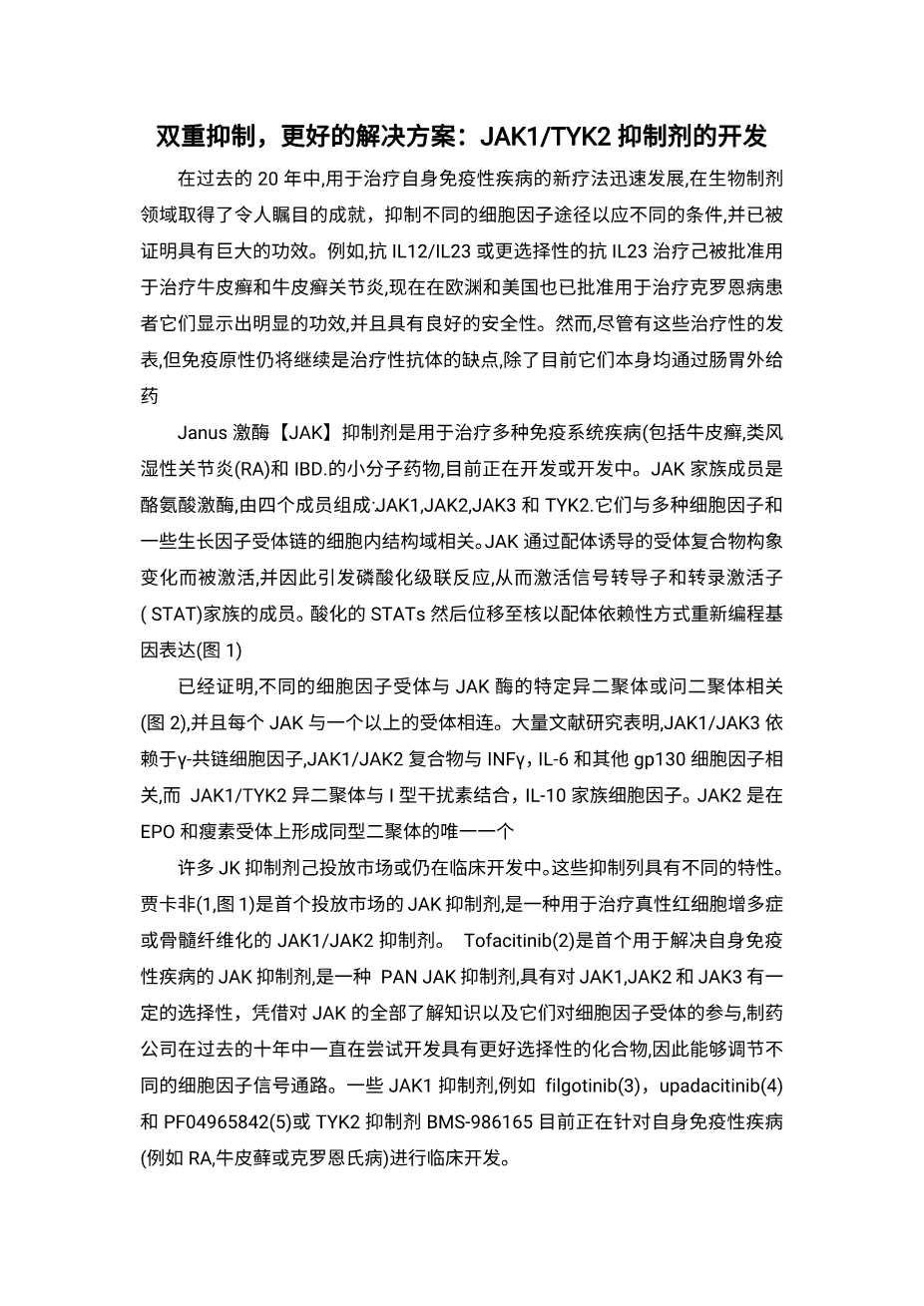 双重抑制,更好的解决方案:JAK1/TYK2抑制剂的开发外文翻译资料