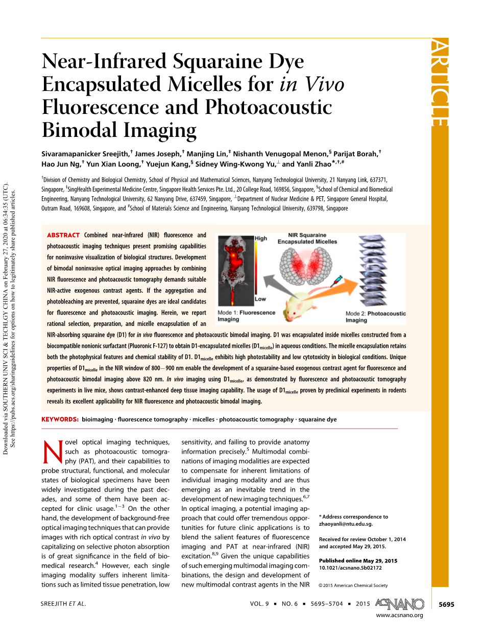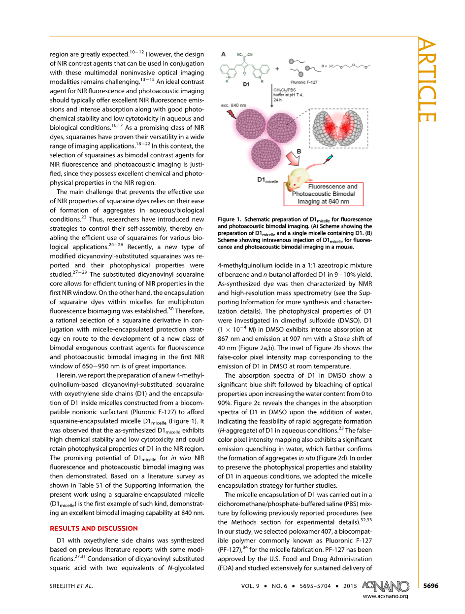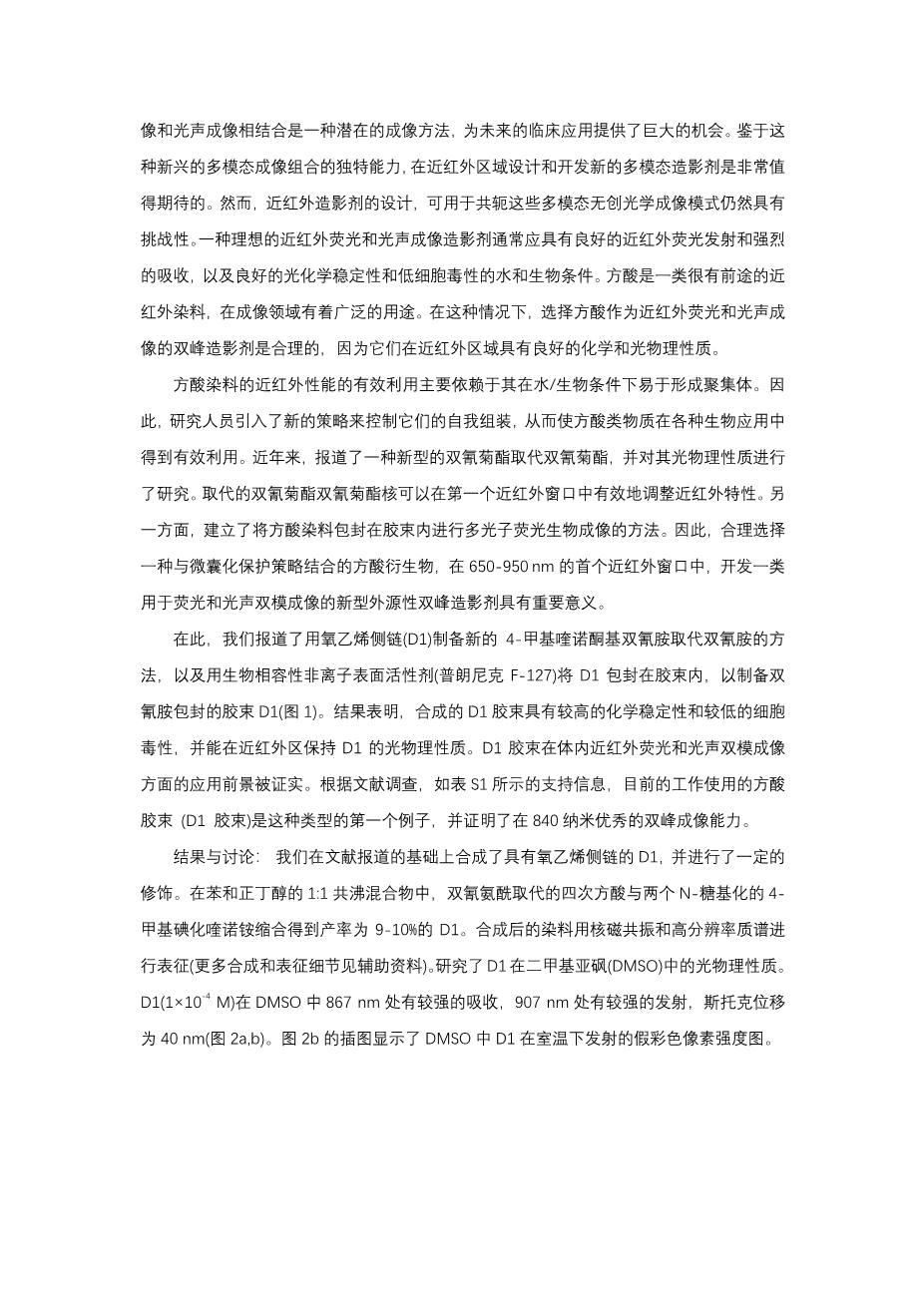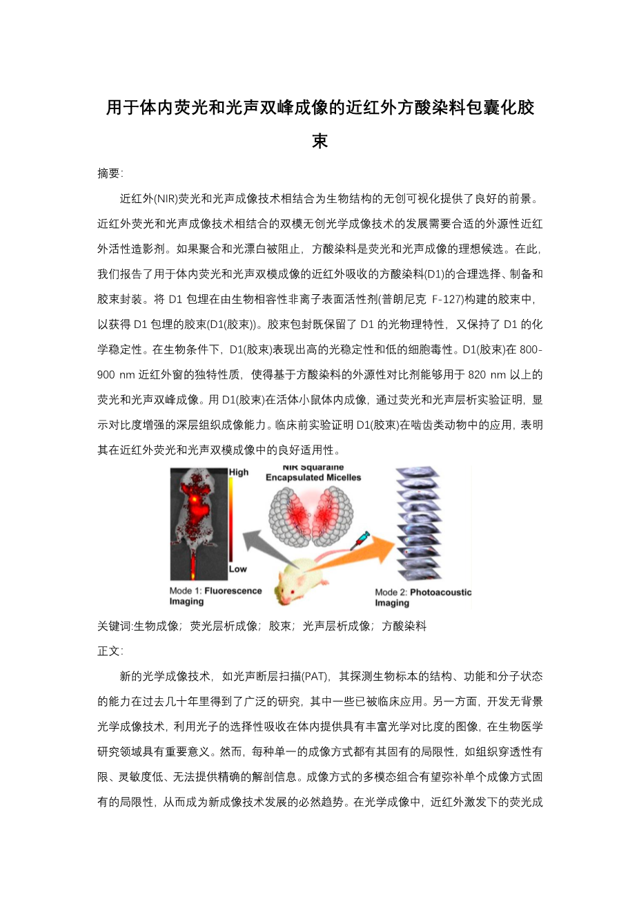用于体内荧光和光声双峰成像的近红外方酸染料包囊化胶 束外文翻译资料