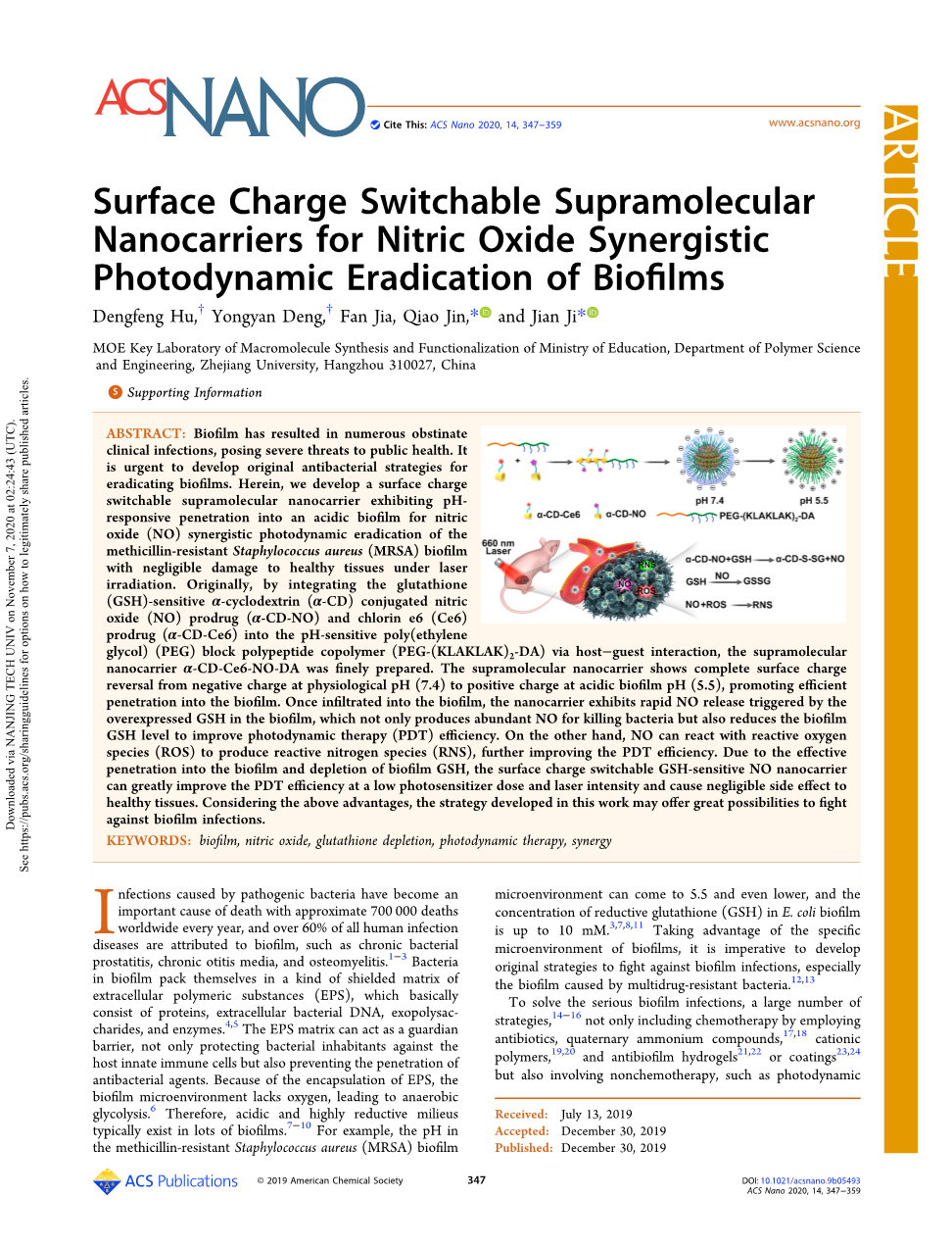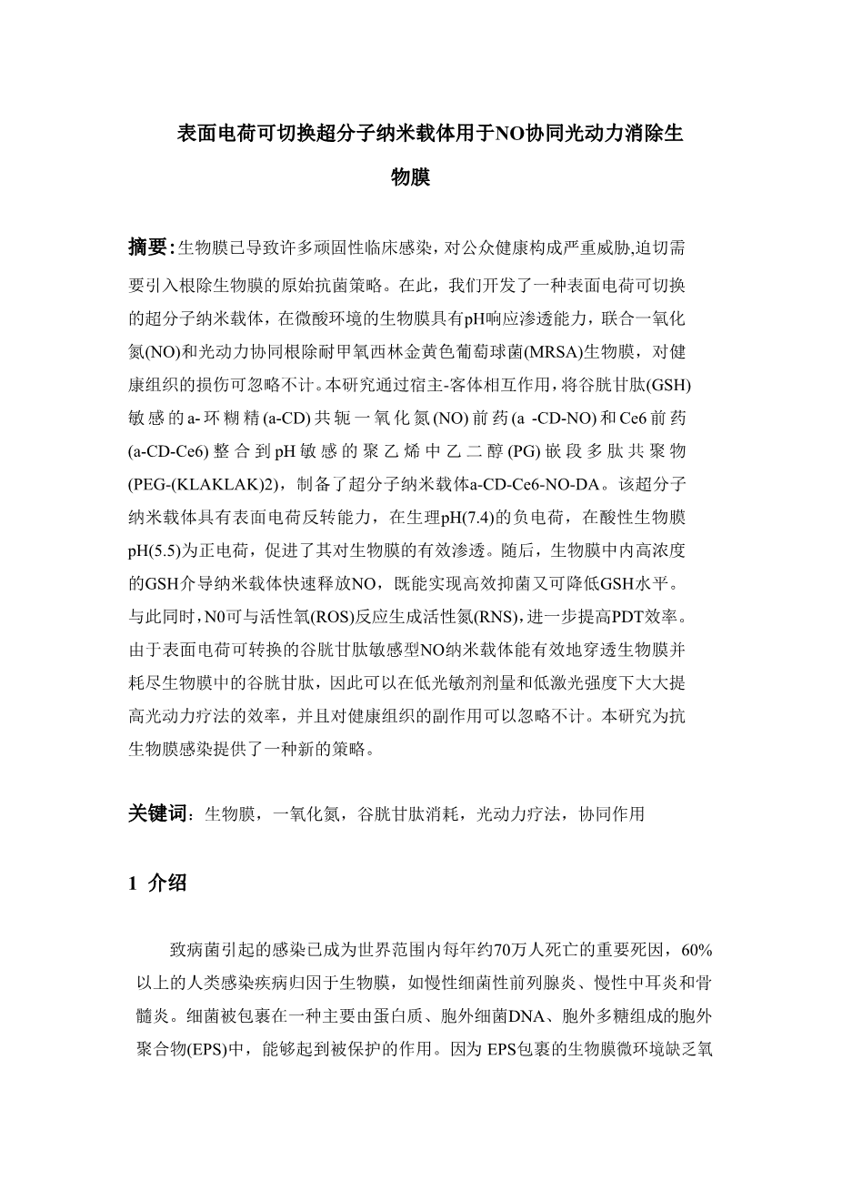 表面电荷可切换超分子纳米载体用于NO协同光动力消除生物膜外文翻译资料