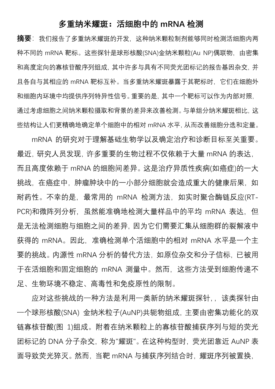 多重纳米耀斑:活细胞中的mRNA检测外文翻译资料