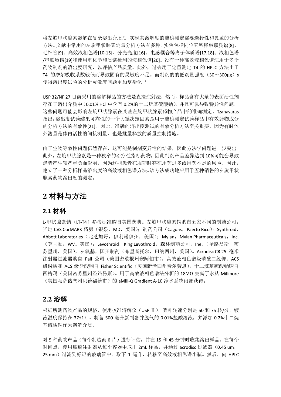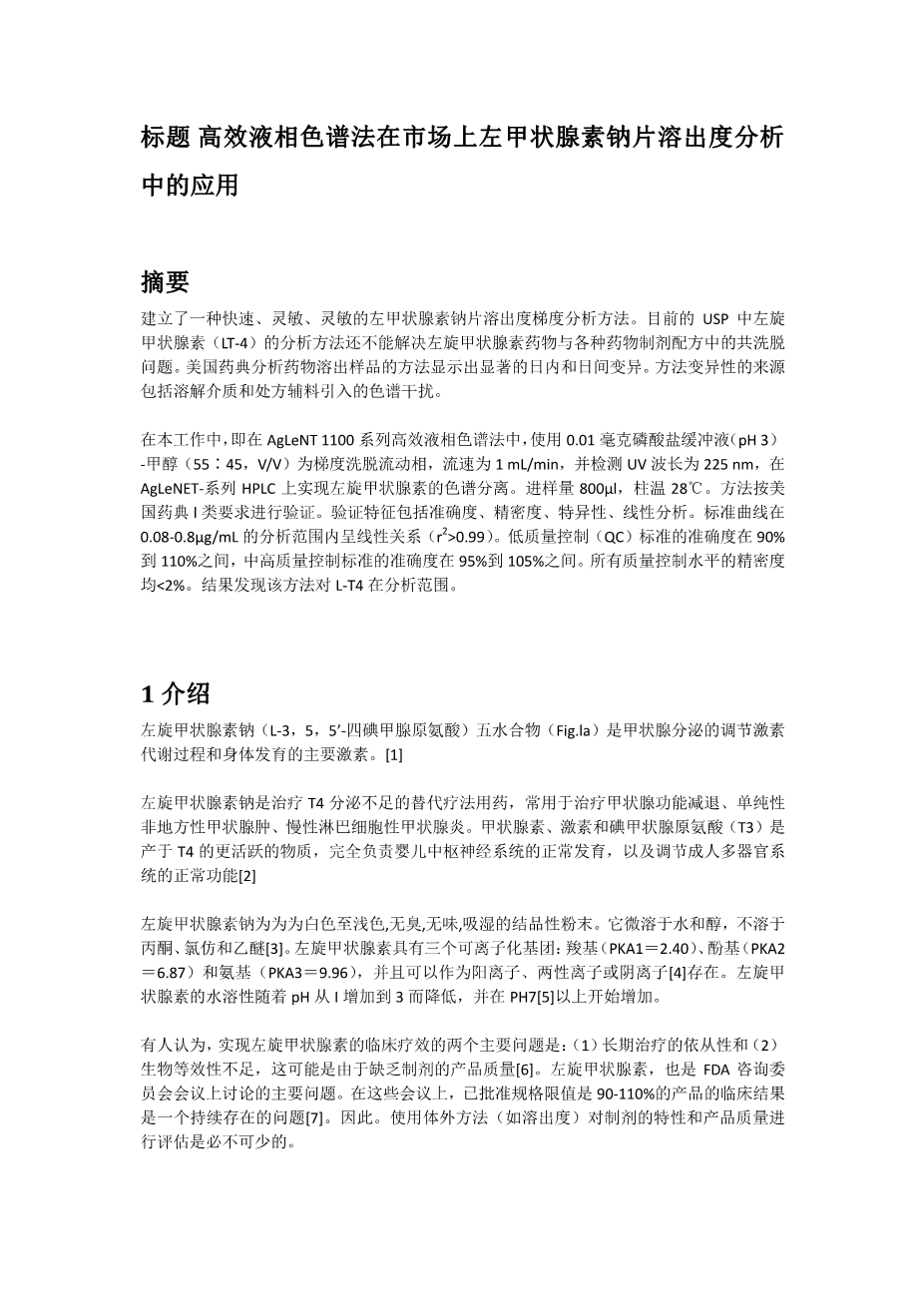 标题高效液相色谱法在市场上左甲状腺素钠片溶出度分析 中的应用外文翻译资料