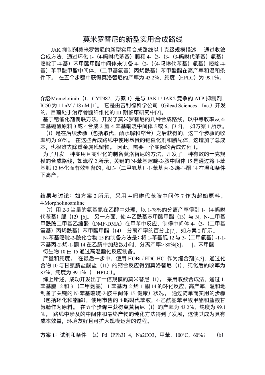- 莫米洛替尼的新型实用合成路线外文翻译资料