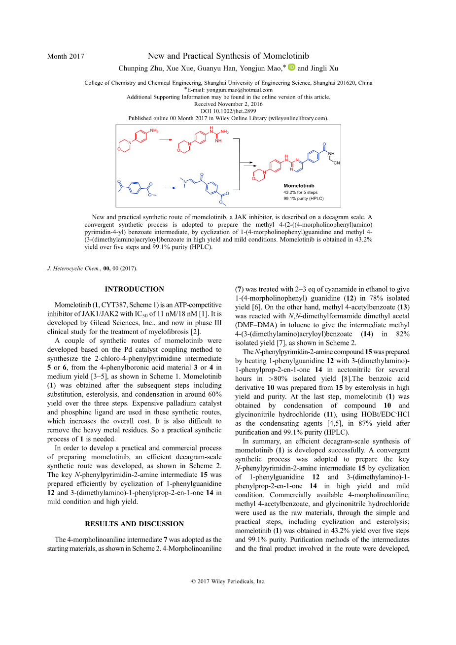 莫米洛替尼的新型实用合成路线外文翻译资料