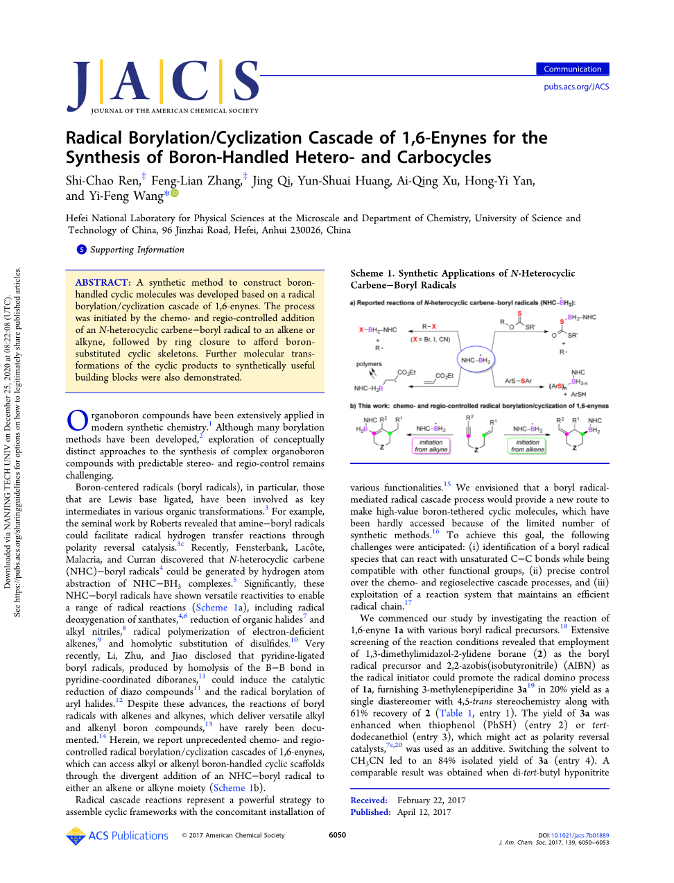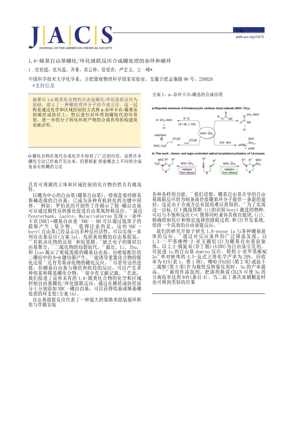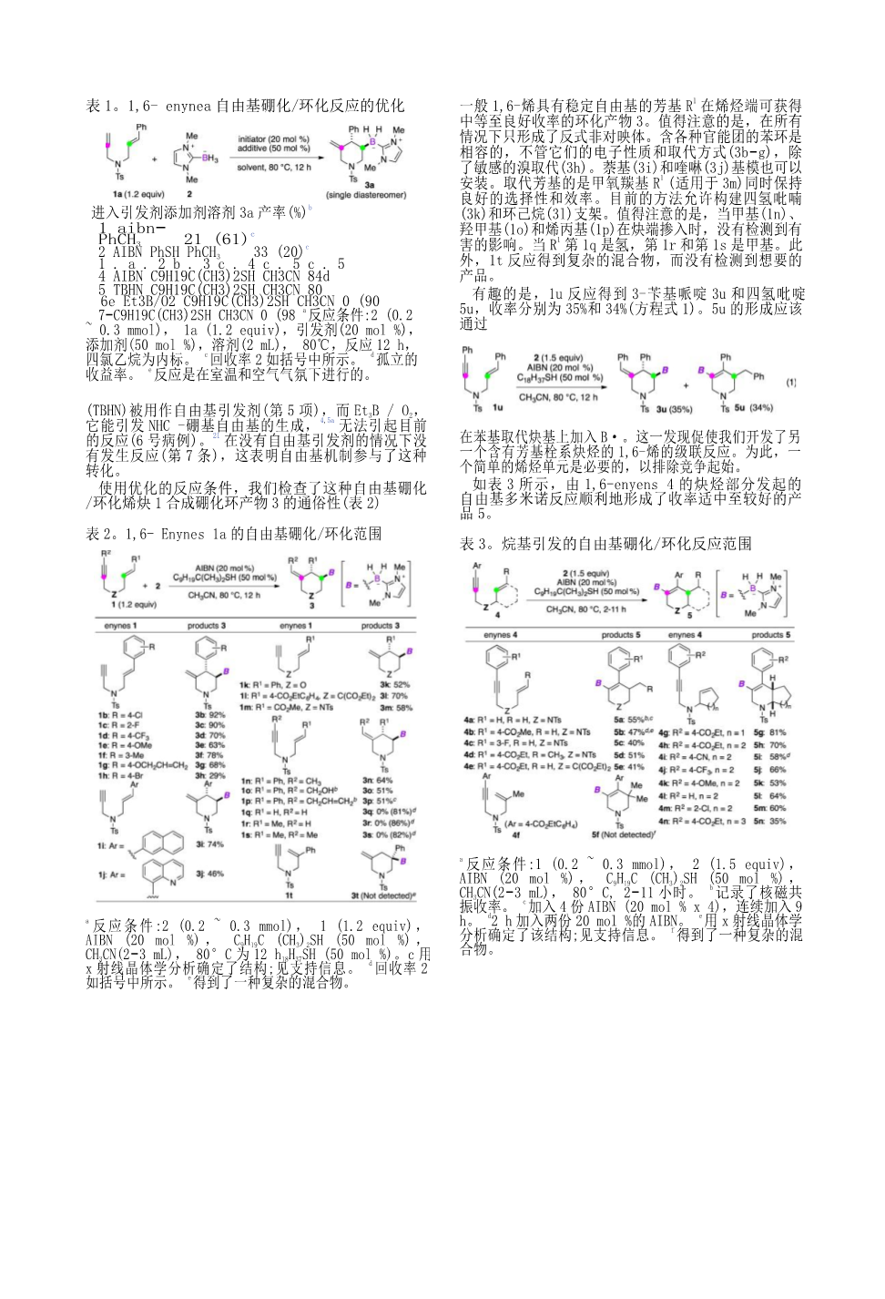 1, 6-烯基自由基硼化/环化级联反应合成硼处理的杂环和碳环外文翻译资料