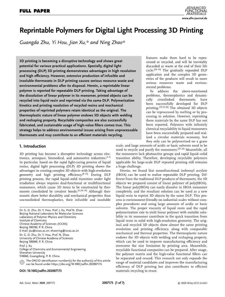 - 用于数字光处理3D打印的可重复打印聚合物外文翻译资料