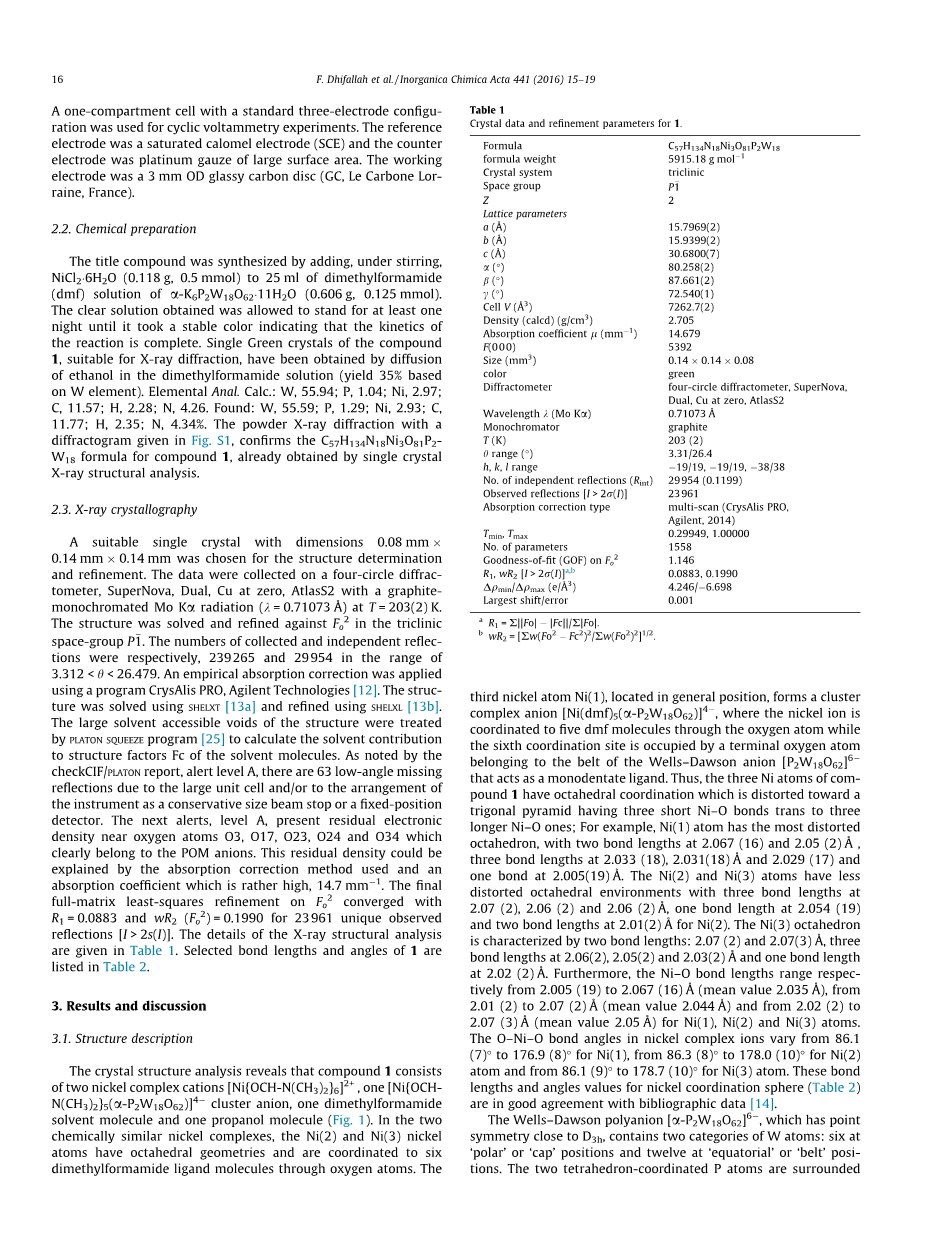 一种新的Ni-DMF修饰的Wells-Dawson多酸化合物:合成、光谱、热特性和X-射线晶体结构外文翻译资料