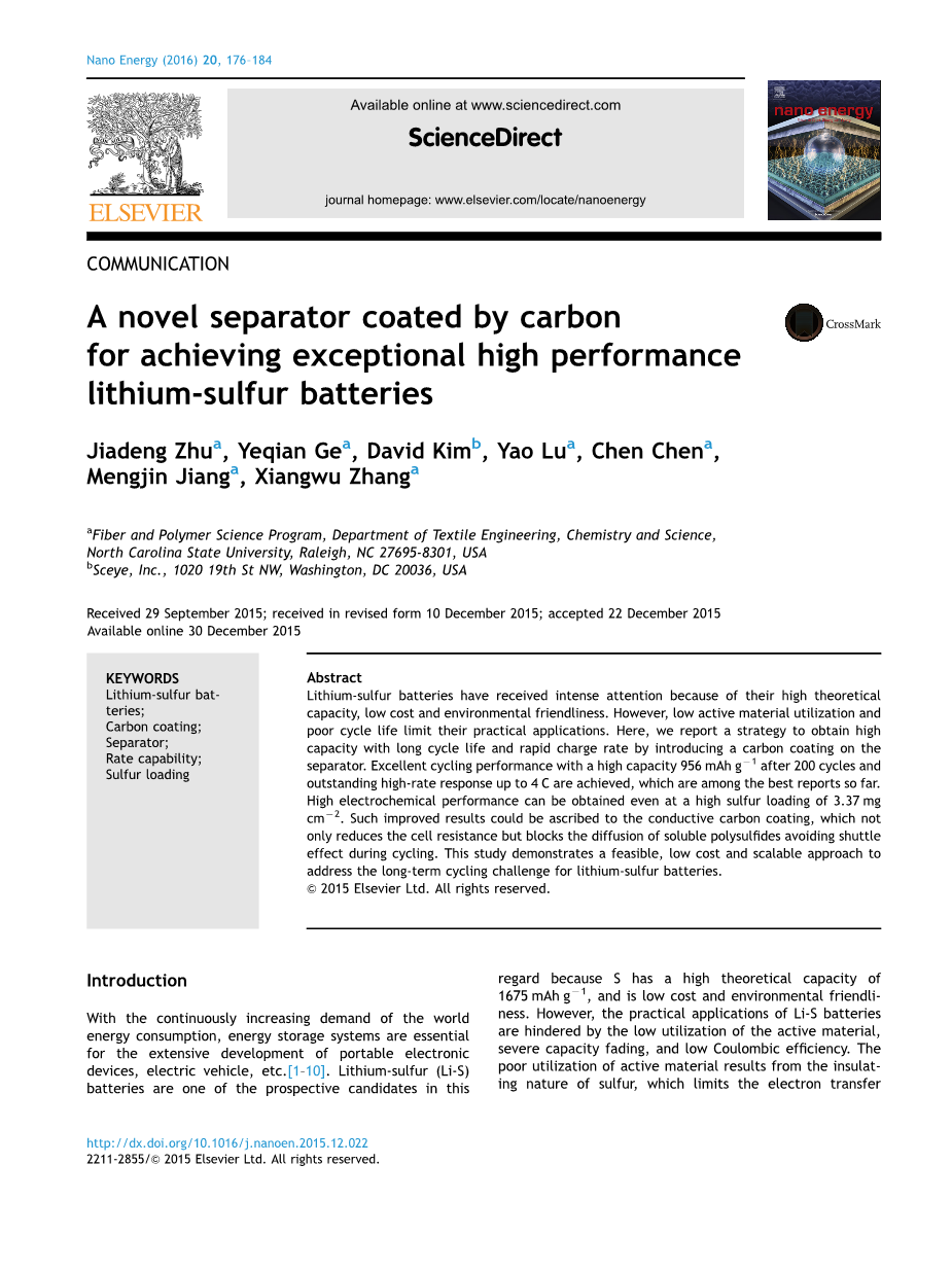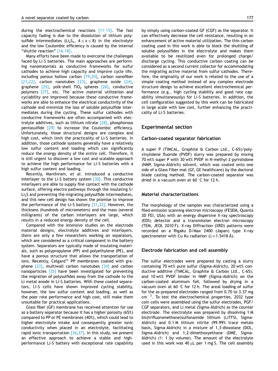 一种提高锂硫电池性能的碳涂覆新型隔膜外文翻译资料