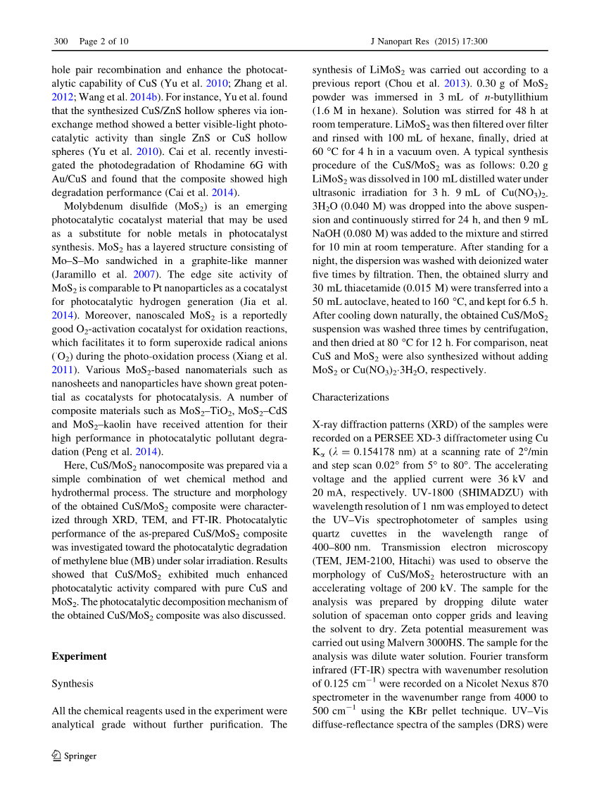 具有较高的光催化活性的CuS / MoS2纳米复合材料外文翻译资料