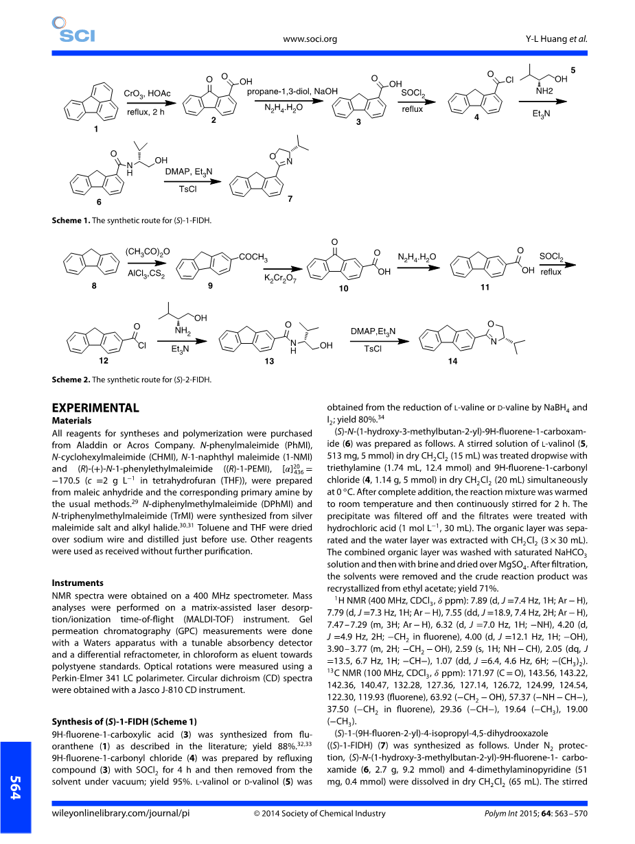(S)-1-FIDH和(S)-2-(9H-氟醚-2-基)-4-异丙基-4,5-二氢氧基-唑(S)-2-FIDH)(方案1和2)。这些新型手性阴离子引发剂具有以下特点。(1)在恩布在场的情况下 泰基锂(n-Buli)是一种以氟系为基础的光学活性化合物,它对阴离子聚合具有良好的引发能力,因为氟环上的活性亚甲基可以发生反应。 n-Buli合成了一种常用作阴离子聚合引发剂的ff和氟碳锂.(2)虽然引发剂的活性中心不是手性碳,但空间位阻与com 手性恶唑取代基对氟化物的Plex能力将是ff和良好的手性诱导反应。(3)由于光活性氨基酸的价格低廉,被用作恒星 丁材料用于制备手性引发剂,可以大规模制备这些光学活性引发剂。