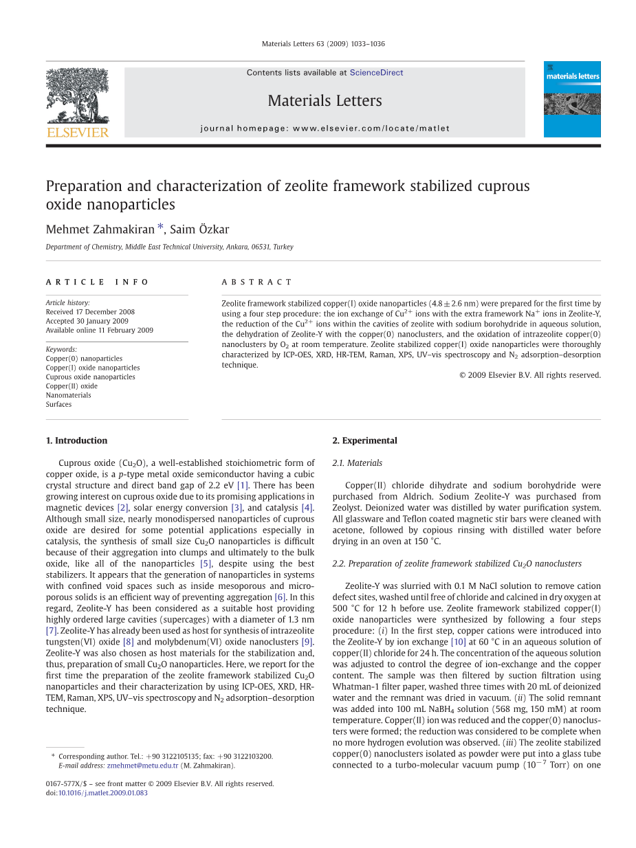 沸石骨架固定的氧化亚铜纳米材料的制备与表征外文翻译资料
