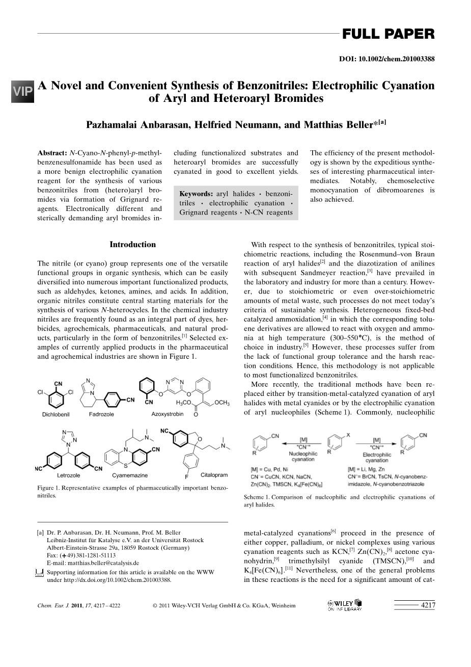 原文作者 Pazhamalai Anbarasan,Helfried Neumann, Matthias Beller