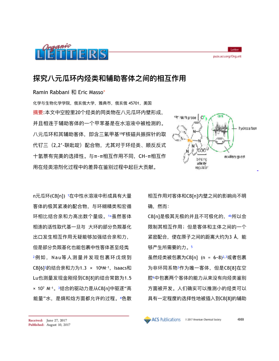 探究八元瓜环内烃类和辅助客体之间的相互作用外文翻译资料