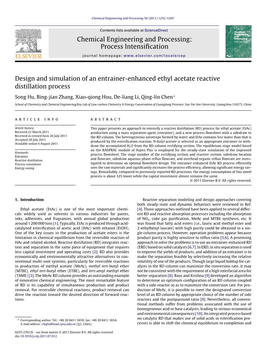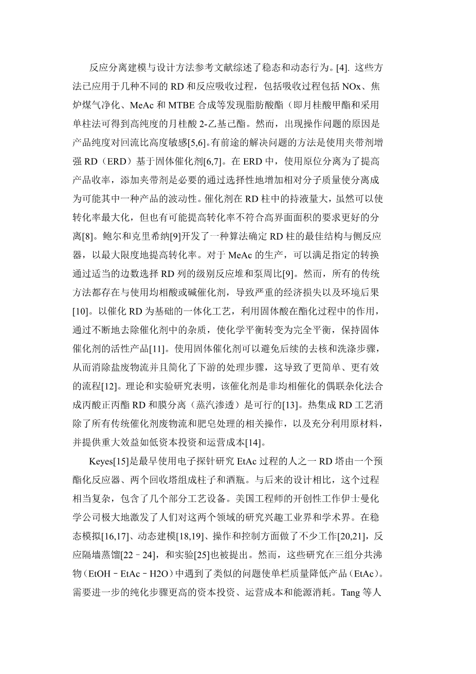 夹带剂增强乙酸乙酯反应器的设计与模拟蒸馏过程外文翻译资料