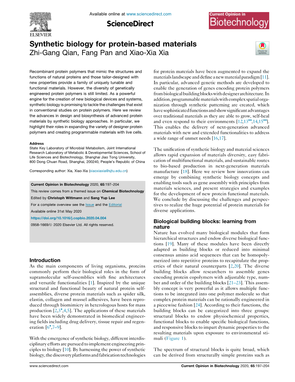 蛋白质基材料的合成生物学外文翻译资料