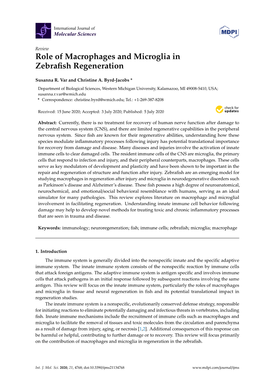 巨噬细胞和小胶质细胞在斑马鱼再生中的作用外文翻译资料