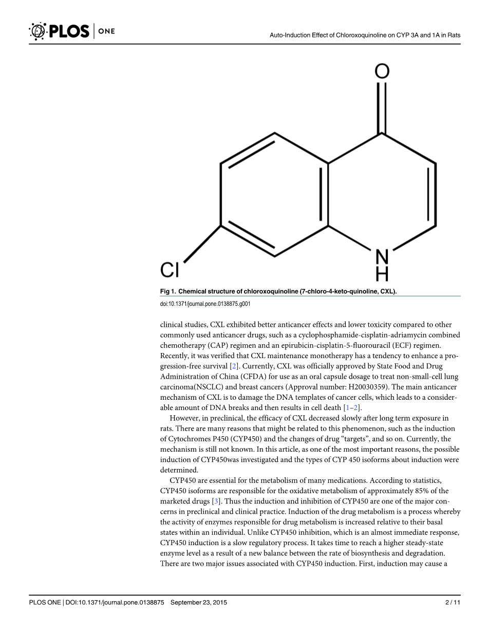 氯喹啉(CXL)[7-氯-4-酮-喹啉],是一种新颖的抗癌药物,具有如图1所示的新的化学结构。在临床前的研究中,CXL能增强荷瘤小鼠Lewis肺癌细胞和异种移植肿瘤中的辐射灵敏度。