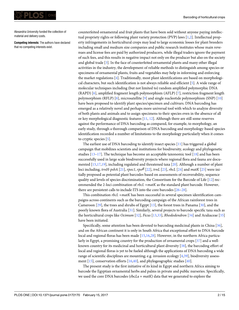 具体来说,中国一直关注药草植物[36],非洲大陆只有在南非,才对DNA条形码局部和区域花卉做出了特别的努力[15,16,28]。 然而,在北非,特别是在埃及一个有前途的生产观赏作物[37] 和其药用和园艺植物多样性 [38]的国家,一个非洲北部著名的国家,地方和区域花卉的条形码工作尚未得到推动 DNA条形码应用范围广泛的科学学科正在加速发展;例如入侵生态学 [4,39]、 生物多样性评估 [15]、 [16,40] 的保育工作和系统地理学研究 [40]。
