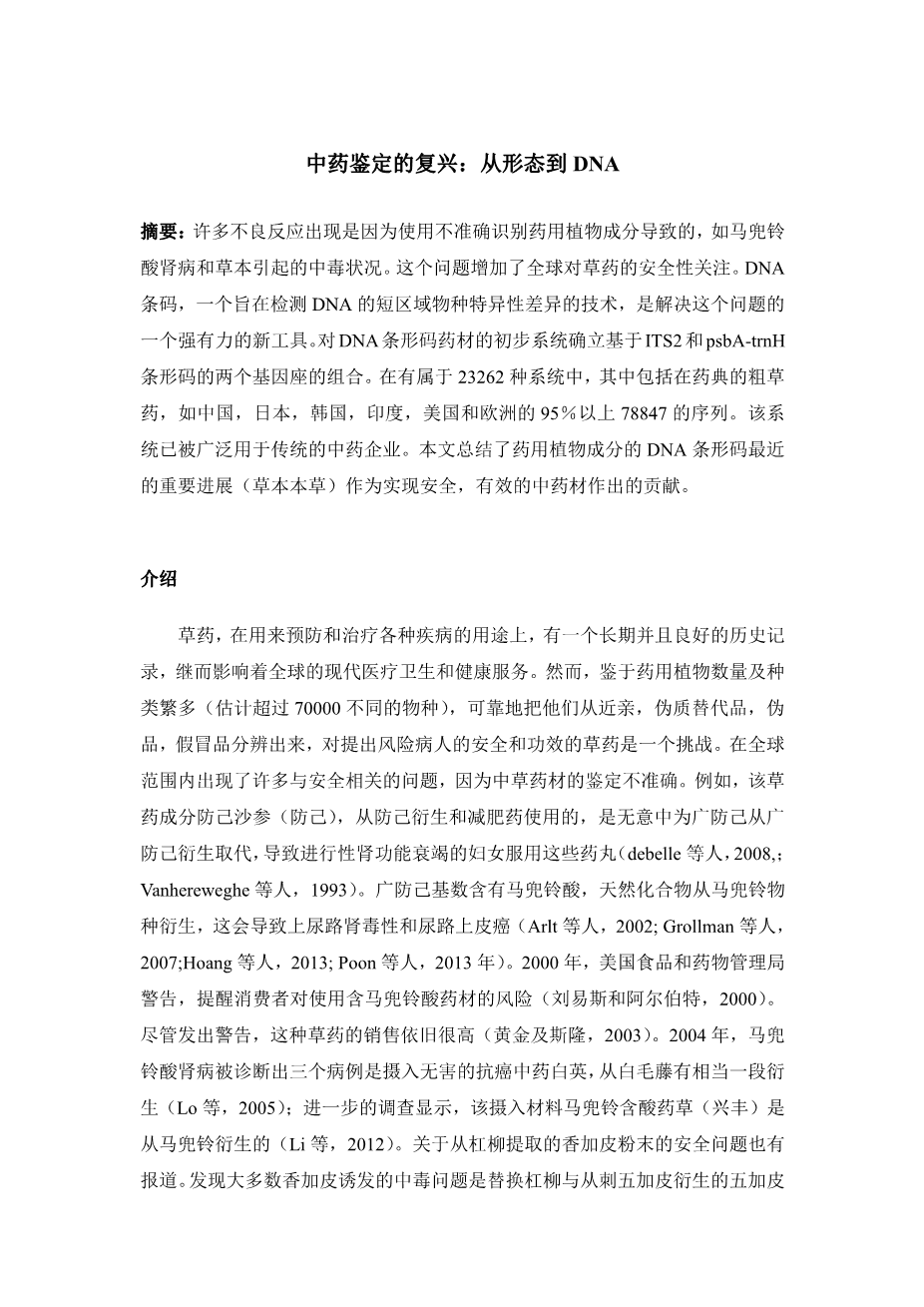 中药鉴定的复兴:从形态到DNA外文翻译资料