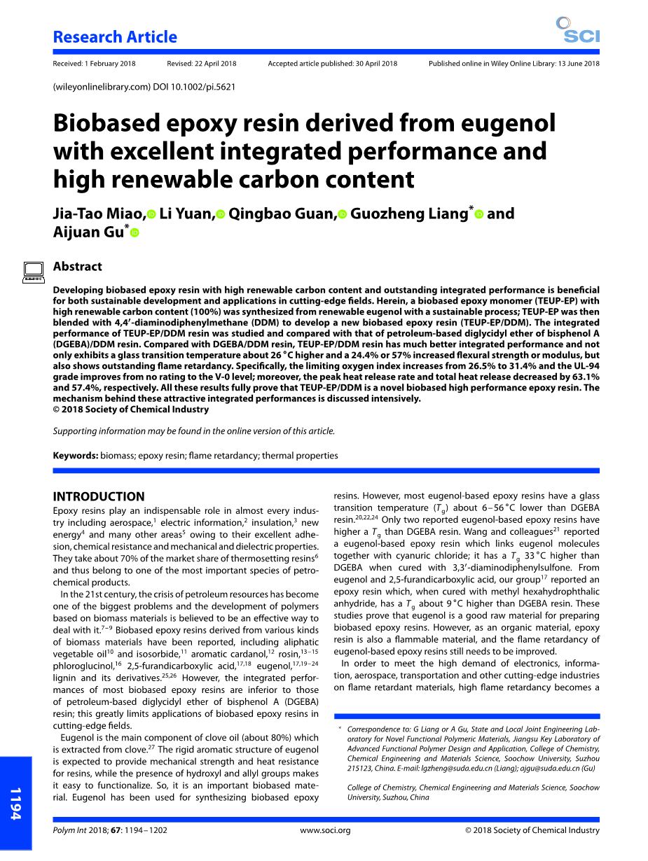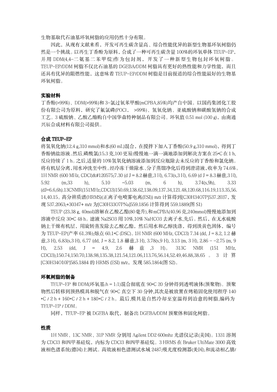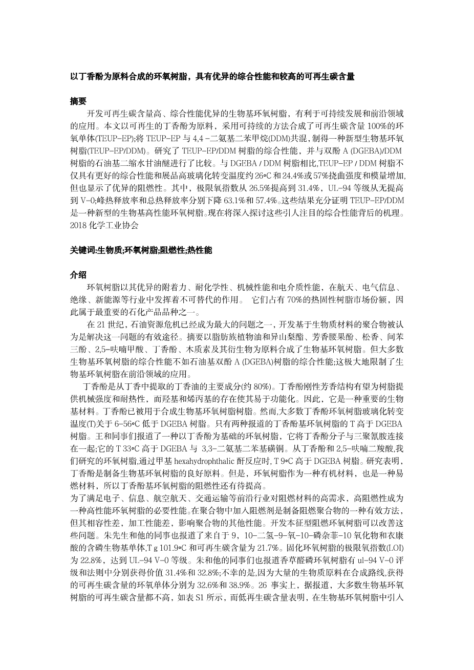 以叮香酚为原料合成的环氧树脂,具有优异的综合性能和较高的可再生碳含量外文翻译资料