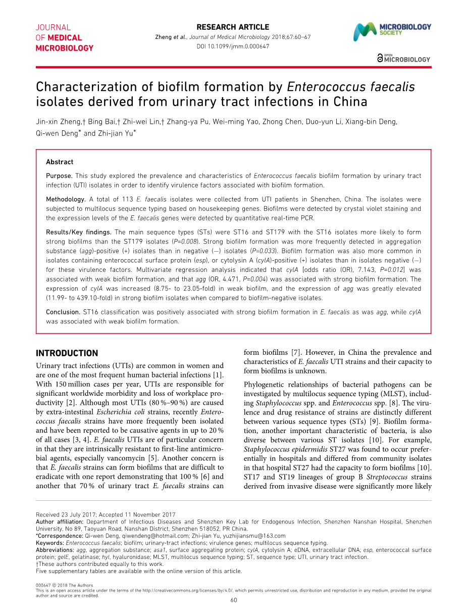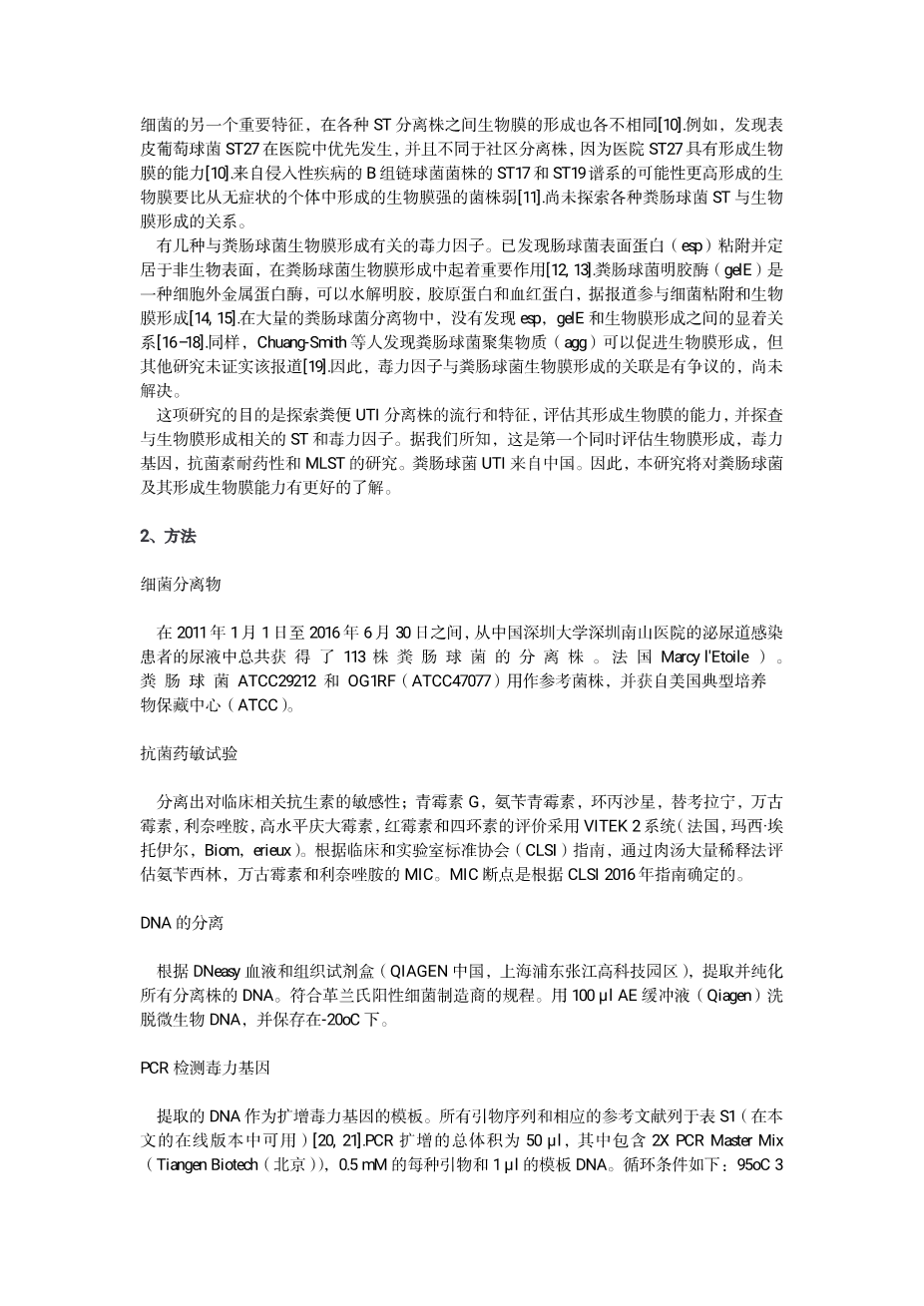 来自中国尿路感染的粪肠球菌分离株形成生物膜的特征外文翻译资料