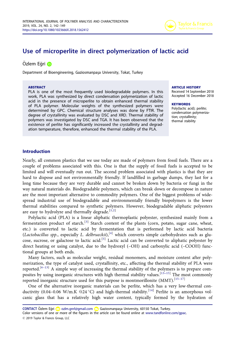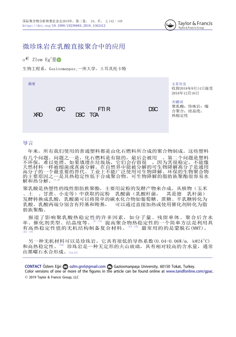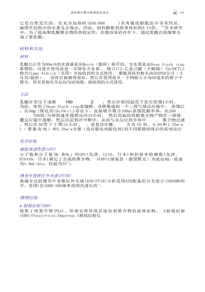 微珍珠岩在乳酸直接聚合中的应用外文翻译资料