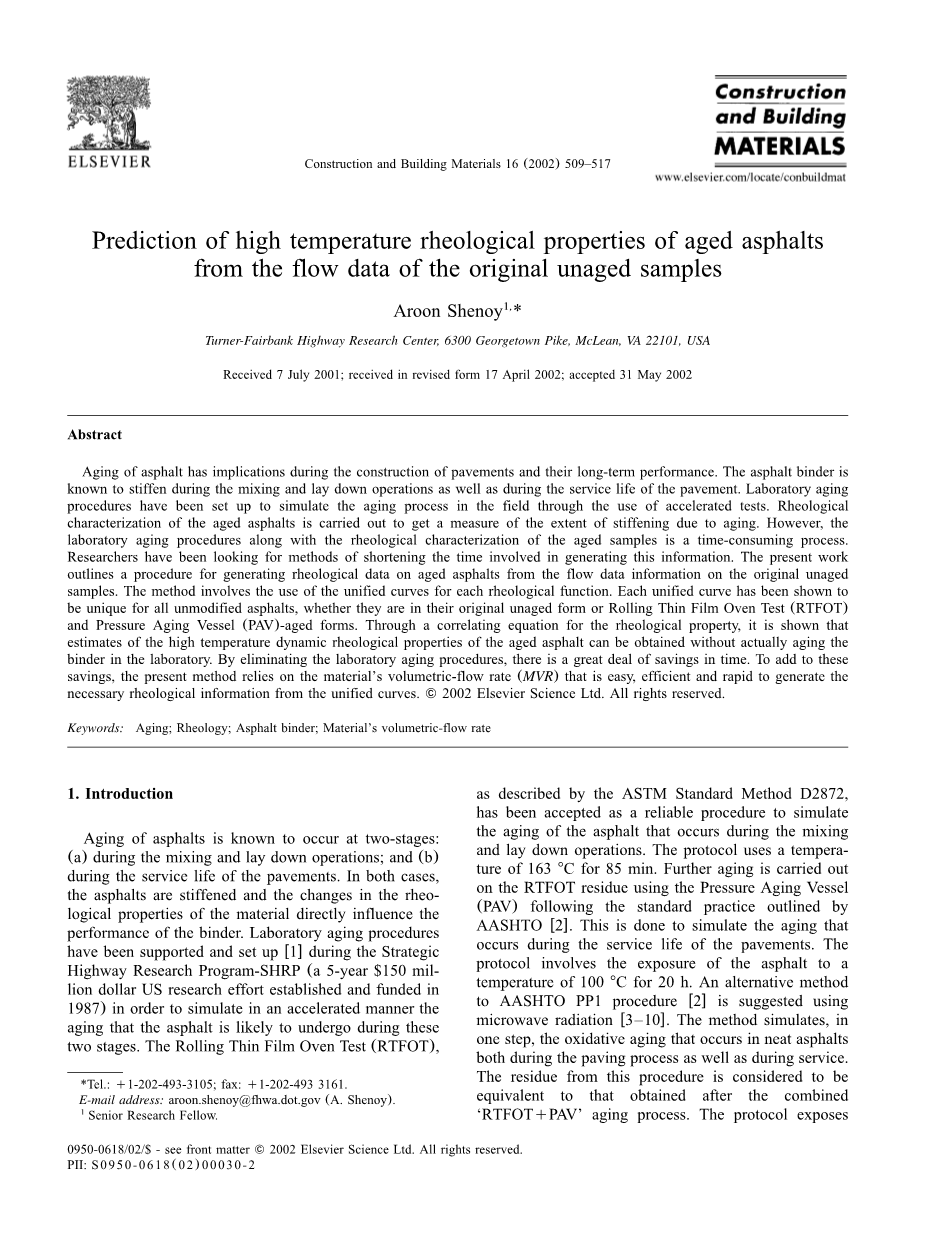 沥青的老化对人行道的施工及其长期性能具有影响。已知沥青粘合剂在混合和铺放操作期间以及人行道的使用寿命期间会变硬。已经建立了实验室老化程序,以通过使用加速测试来模拟现场的老化过程。进行老化沥青的流变学表征以测量由于老化引起的硬化程度。然而,实验室老化程序以及老化样品的流变学表征是一个耗时的过程。研究人员一直在寻找缩短产生这些信息的时间的方法。本工作概述了从原始未老化样品的流动数据信息生成老化沥青流变数据的程序。该方法涉及对每种流变功能使用统一曲线。对于所有未改性沥青,无论是原始未老化形式还是滚动薄膜烘箱测试(RTFOT) 和压力老化容器(PAV)老化形式,每条统一曲线均具有独特性。通过流变性能的相关方程,可以看出,在实验室中不实际老化粘合剂的情况下,可以获得老化沥青的高温动态流变性能的估算值。通过消除实验室老化程序,可以节省大量时间。除了增加这些节省之外,本方法还依赖于材料的体积流率(MVR),该体积流率易于,高效且快速地从统一曲线生成必要的流变信息。copy;2002 Elsevier ScienceLtd。保留所有权利。