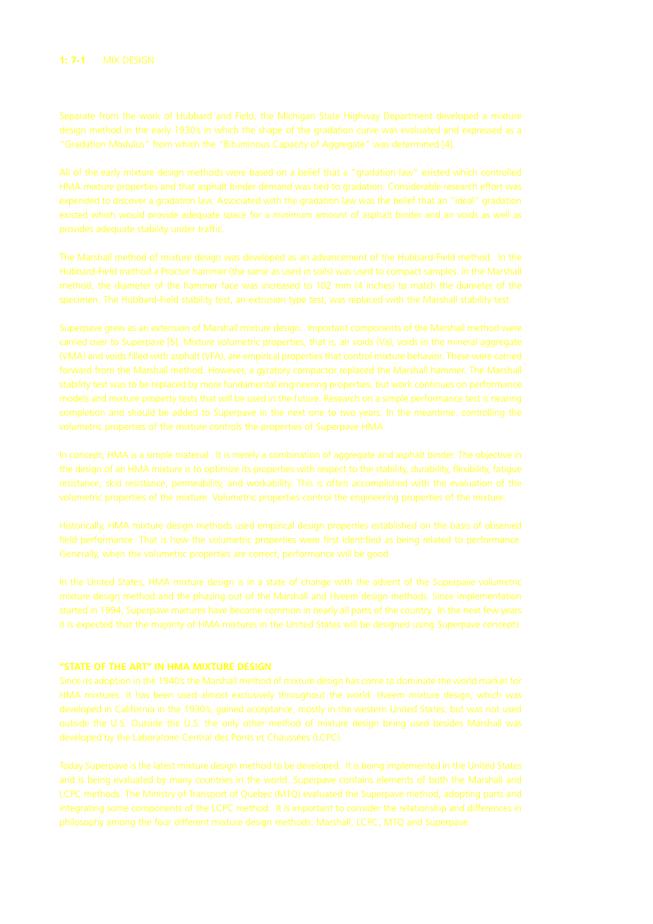在美国,随着Superpave体积混合物设计方法的出现以及马歇尔和Hveem设计方法的逐步淘汰,HMA混合物设计处于不断变化的状态。自1994年开始实施以来,Superpave混合料已在全国几乎所有地区普及。在未来几年中,预计美国的大多数HMA混合物将使用Superpave概念进行设计。