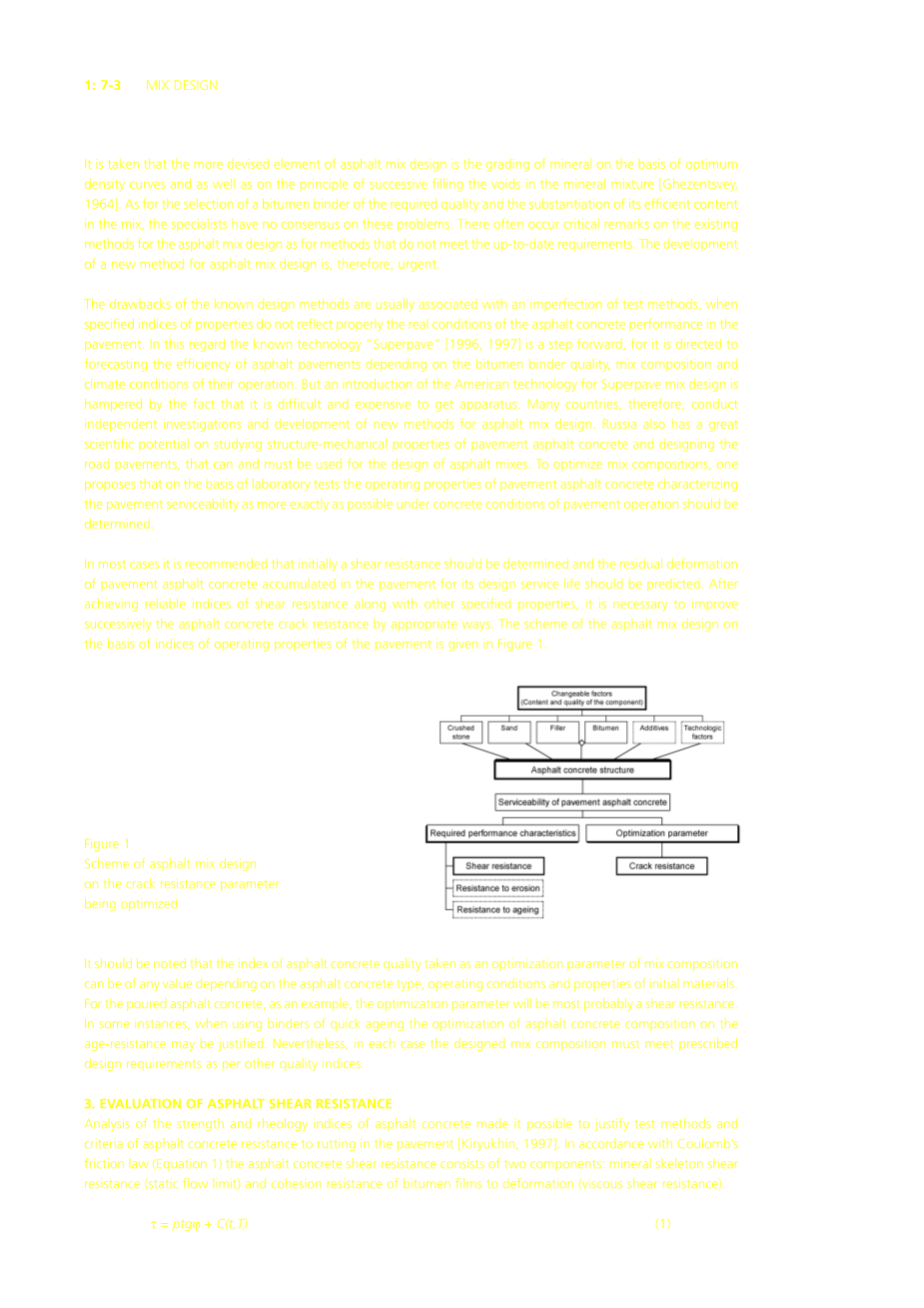 最重要的抗剪设计条件是温度及其频率分布、荷载、荷载量和荷载作用时间。表征沥青混凝土抗剪性能的指标有:内摩擦系数、剪切时的黏聚力、粘塑性系数和粘塑性变形破坏活化能。这些特性可以根据GOST(国家标准)12801-98“基于有机粘合剂的公路和机场建筑材料的圆柱形试样的测试结果来确定。测试方法”。