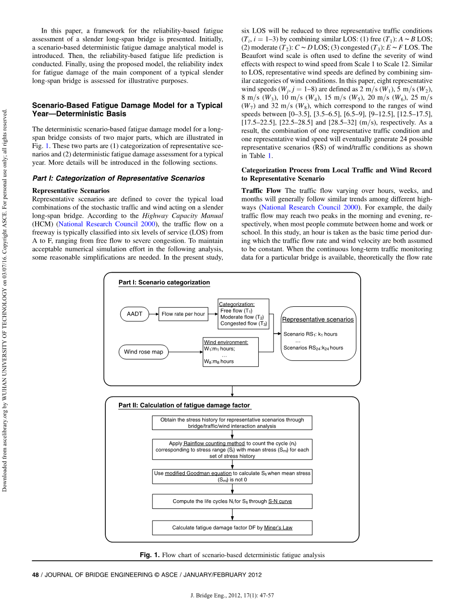 确定的方案为基础的疲劳损伤模型对大跨度桥梁主要由两部分组成,其中图1所示 ,这2个部分是(1)分类的代表性场景和(2)确定的疲劳损伤评估的典型的一年. 更多细节将在下面的章节中介绍.