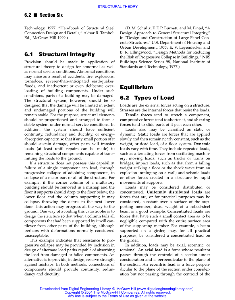 在设计时应采用可能的最大负荷。建筑在预期条件下的最小设计荷载应在当地的建筑规范中有规定,当没有适用的当地规范时,按ASCE7-93雷斯顿美国土木工程师学会(www.asce.org)制定的《建筑物及其他构筑物最低设计荷载》 设计。对于公路和高速公路桥梁,最小设计荷载应在华盛顿美国公路与运输协会的《美国公路桥梁规范》(www.transportation.org)中规定。铁路桥梁的最小设计荷载应在芝加哥美国铁路工程和养路协会制定的(www.arema.org)《铁道工程手册》中查找。