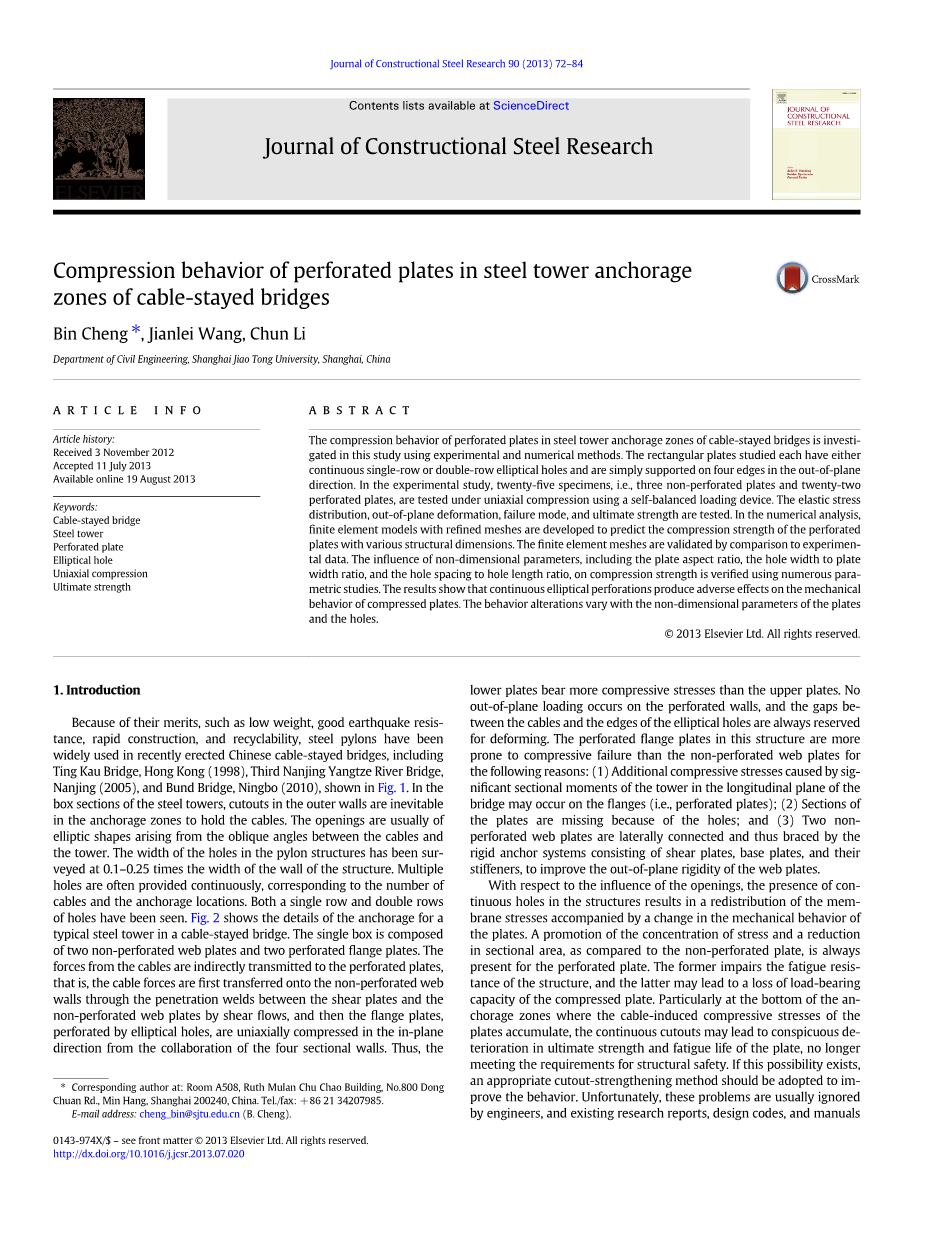 斜拉桥在钢塔锚地穿孔板区域的压缩行为外文翻译资料