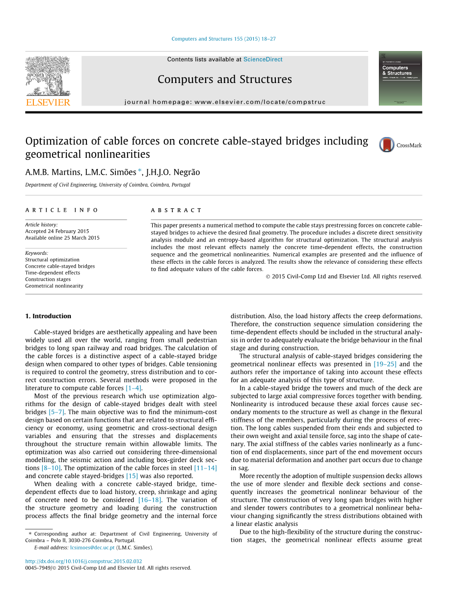 关键词:结构优化;混凝土斜拉桥;时间依赖效应;施工阶段;几何非线性