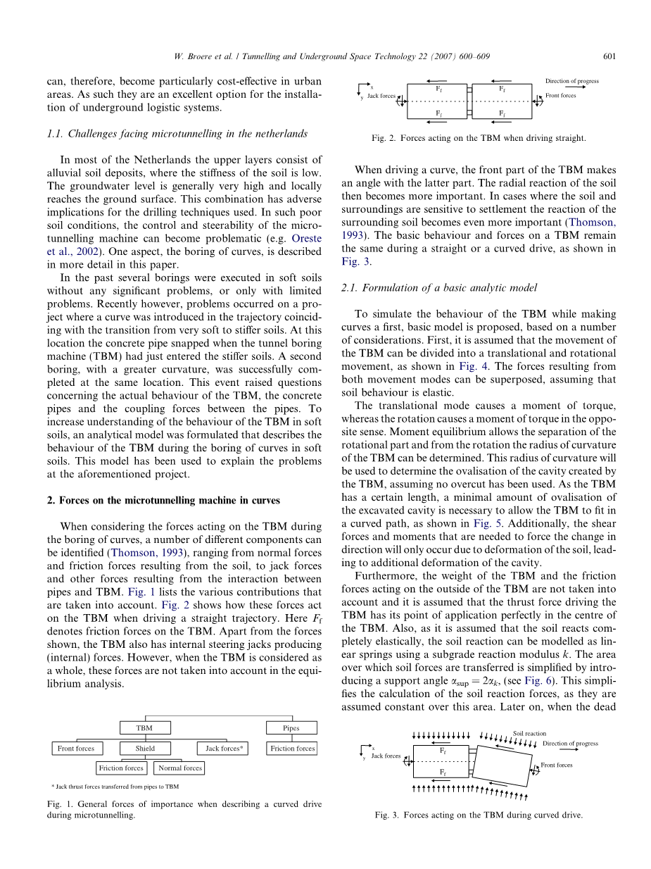 在过去的几年,钻孔技术作业没有任何重大问题,或者只是有限的问题。然而最近,一个项目出现了问题,项目中引进的一条曲线轨迹正好与软土到硬土的过渡重合。在这个位置,当隧道掘进机恰好进入硬质土层时,混凝土管突然断裂。另一个具有更大曲率的钻孔在同样的位置成功完成。这一事件引发了关于隧道掘进机混凝土管道和管道之间的耦合力实际性能的问题。为了加深对隧道掘进机在软土中性能的理解,建立了一个分析模型来描述在曲线掘进期间隧道掘进机在软土中的性能。这个模型已经用来解释上述项目中出现的问题。