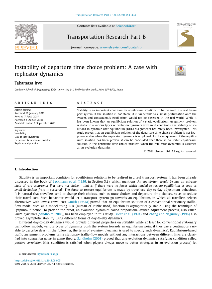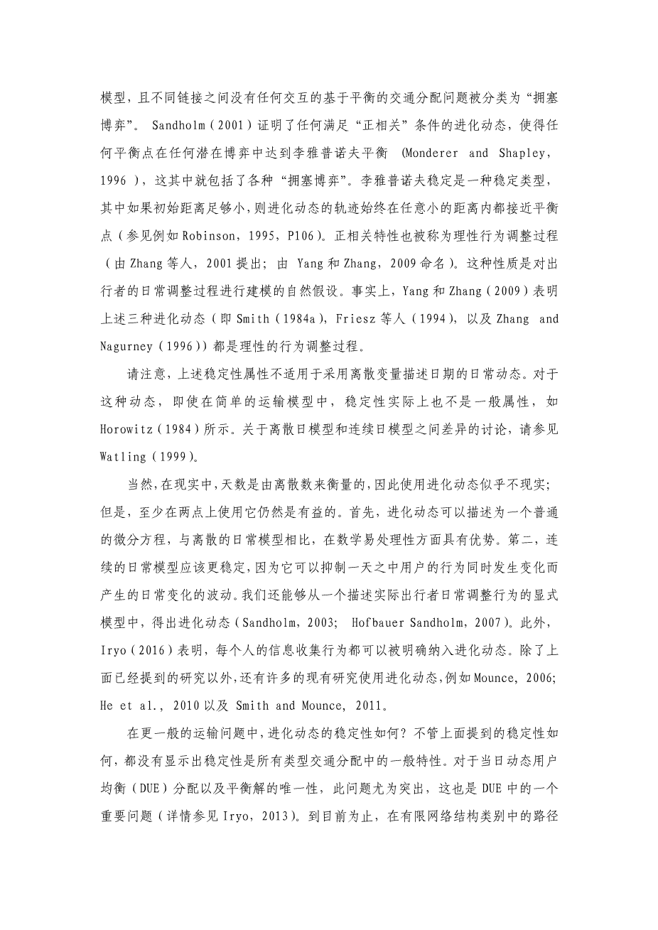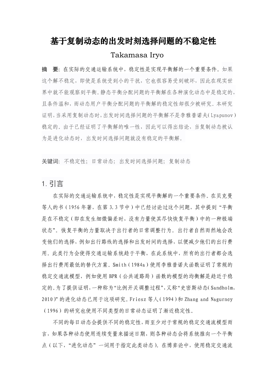 基于复制动态的出发时刻选择问题的不稳定性外文翻译资料