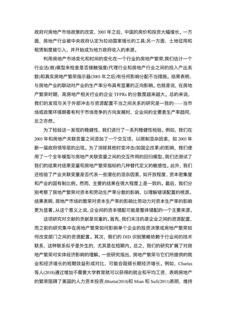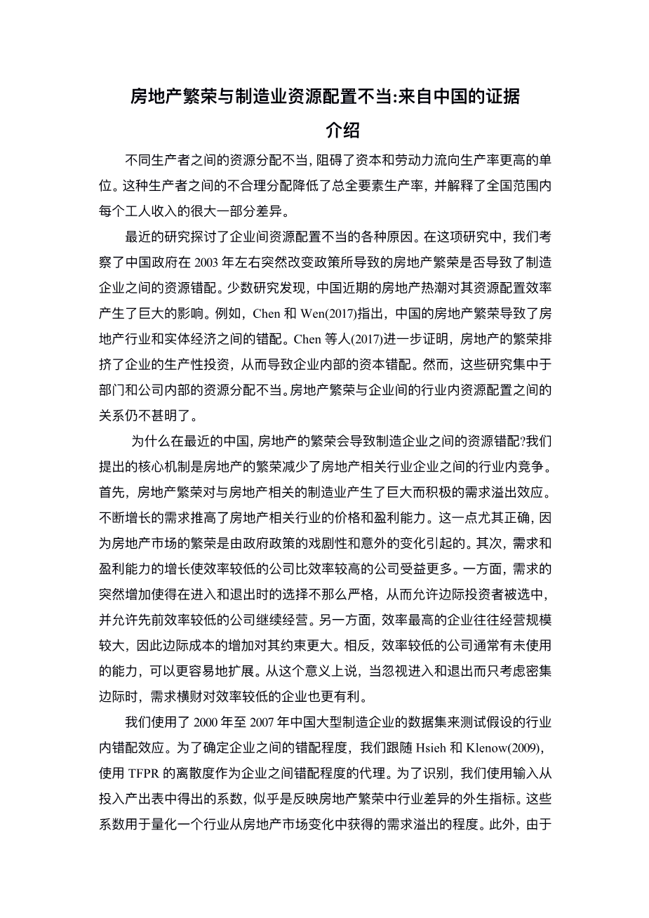 房地产繁荣与制造业资源配置不当:来自中国的证据介绍外文翻译资料