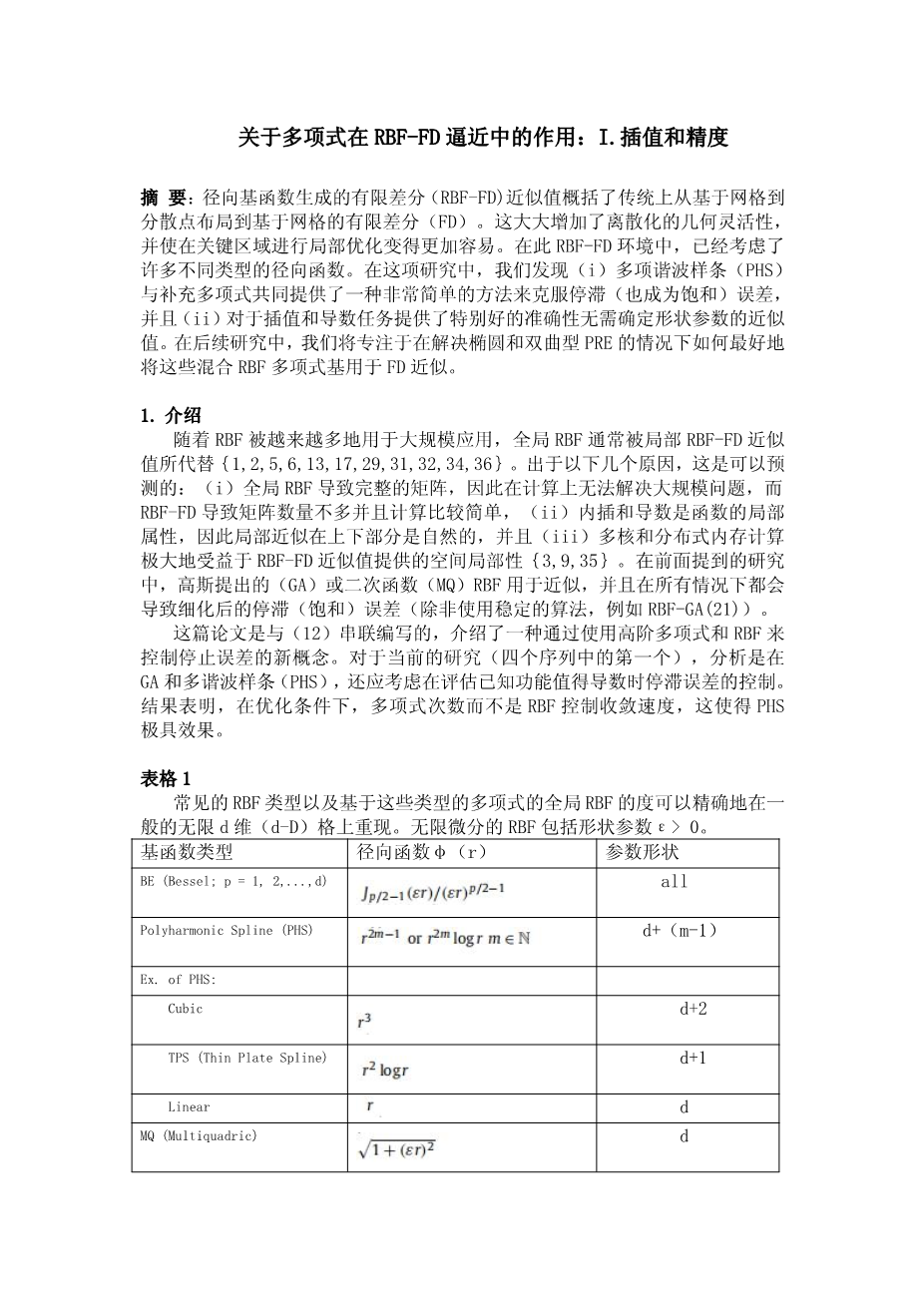 关于多项式在RBF-FD逼近中的作用: I. 插值和精度外文翻译资料