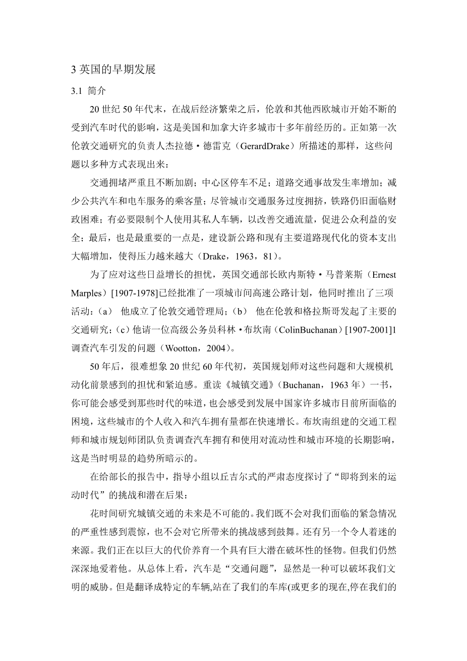 Fifty years later, it is hard to imagine the apprehension and sense of urgency at the start of the 1960s with which British planners approached these problems and the prospect of mass motorisation. Rereading the report Traffic in Towns (Buchanan, 1963), one perhaps gets a flavour of those times and also the dilemmas faced presently by many cities of the developing world that are experiencing rapid rises in personal income and car ownership. The team of traffic engineers and town planners assembled by Buchanan was charged with investigating the long- term consequences for mobility and the urban environment of car ownership and use suggested by trends evident at that time.