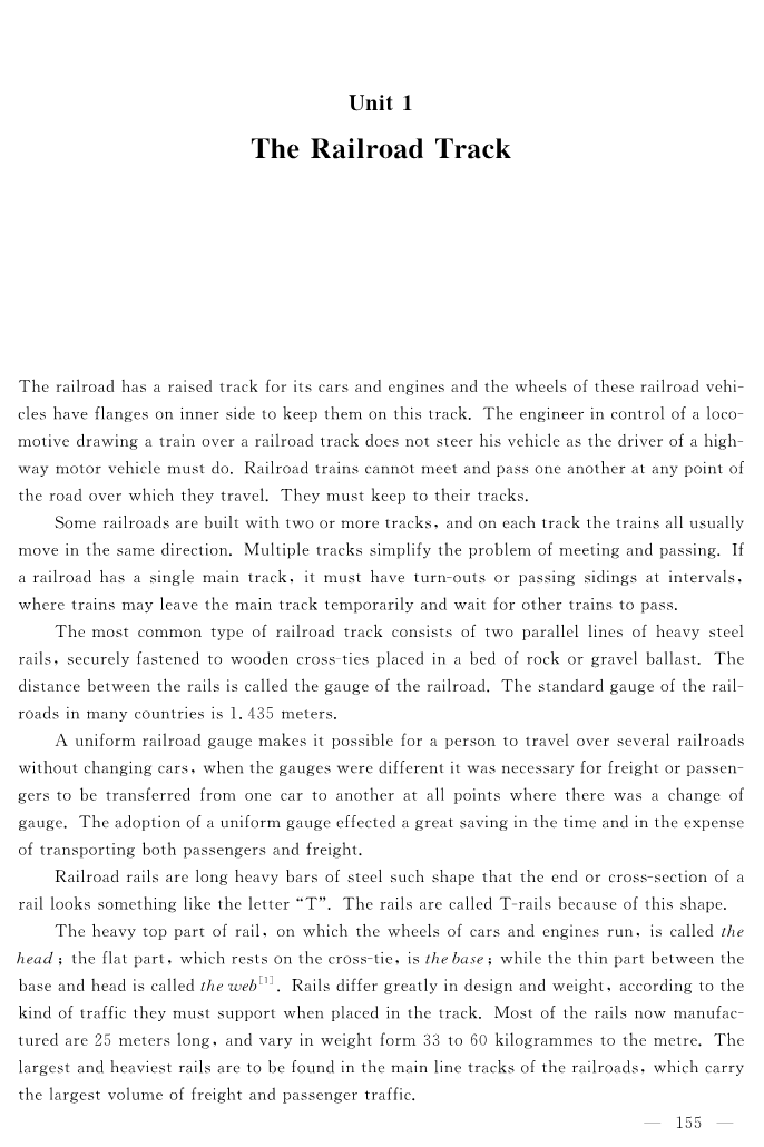 节点支撑钢轨,而压载物支撑节点。今天,在线路上使用每米重达60公斤或60公斤以上的铁路来处理交通拥挤。所谓的T型导轨(从它的形状)的一直使用是因为经验表明它是最实用和最经济的形式的轨道。