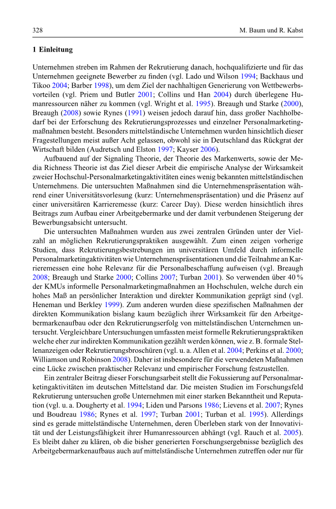 帝高2004年; Barber 1998 ),以通过卓越的人力资源接近可持续产生竞争优势的目标(参见Priem和Butler 2001 ,Collins和Han 2004 )(参见Wright等,1995 )。但是,Breaugh和Starke(2000 ),Breaugh(2008 )和Rynes(1991 )指出,在研究招聘过程和个人HR 营销措施方面,有很多工作要做。尽管这些公司构成了德国经济的支柱,但在这些问题上,尤其是中型公司还是被忽略了(Audretsch and Elston 1997)。; Kayser 2006 )。
