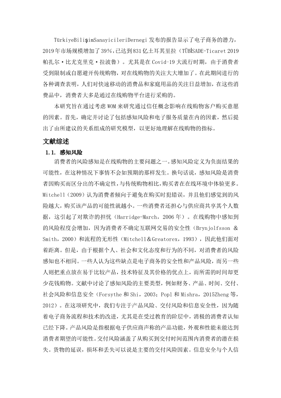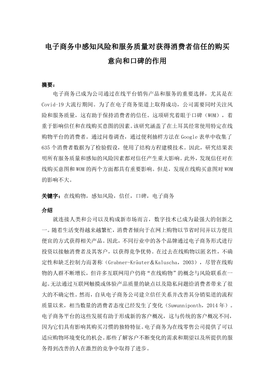 电子商务中感知风险和服务质量对获得消费者信任的购买 意向和口碑的作用外文翻译资料