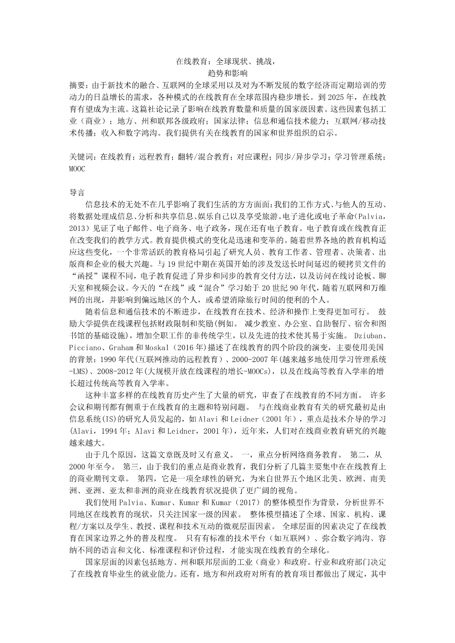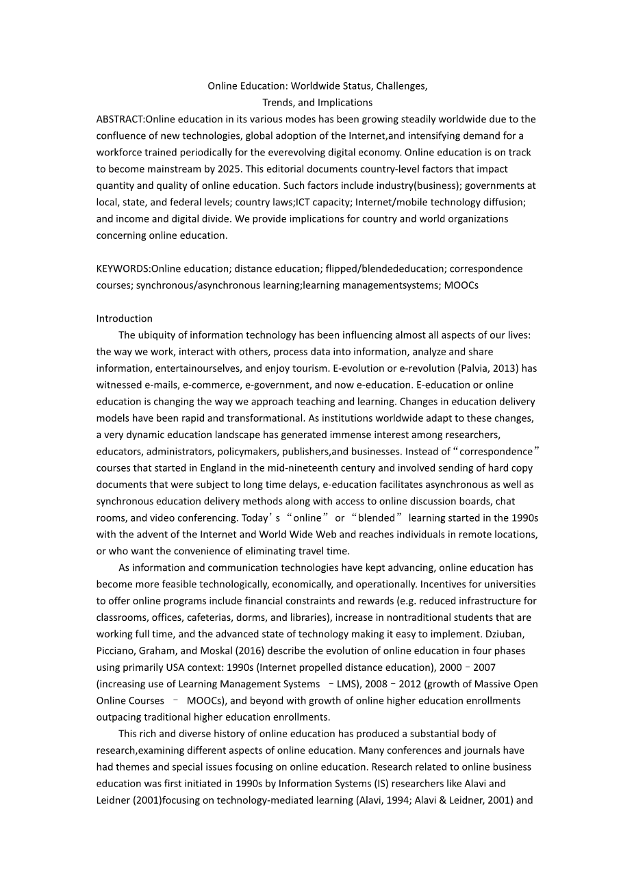 在线教育:全球现状、挑战, 趋势和影响外文翻译资料