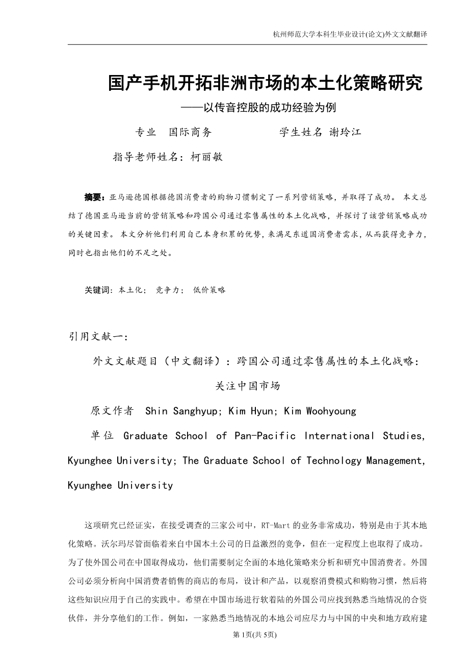 国产手机开拓非洲市场的本土化策略研究——以传音控股的成功经验为例外文翻译资料