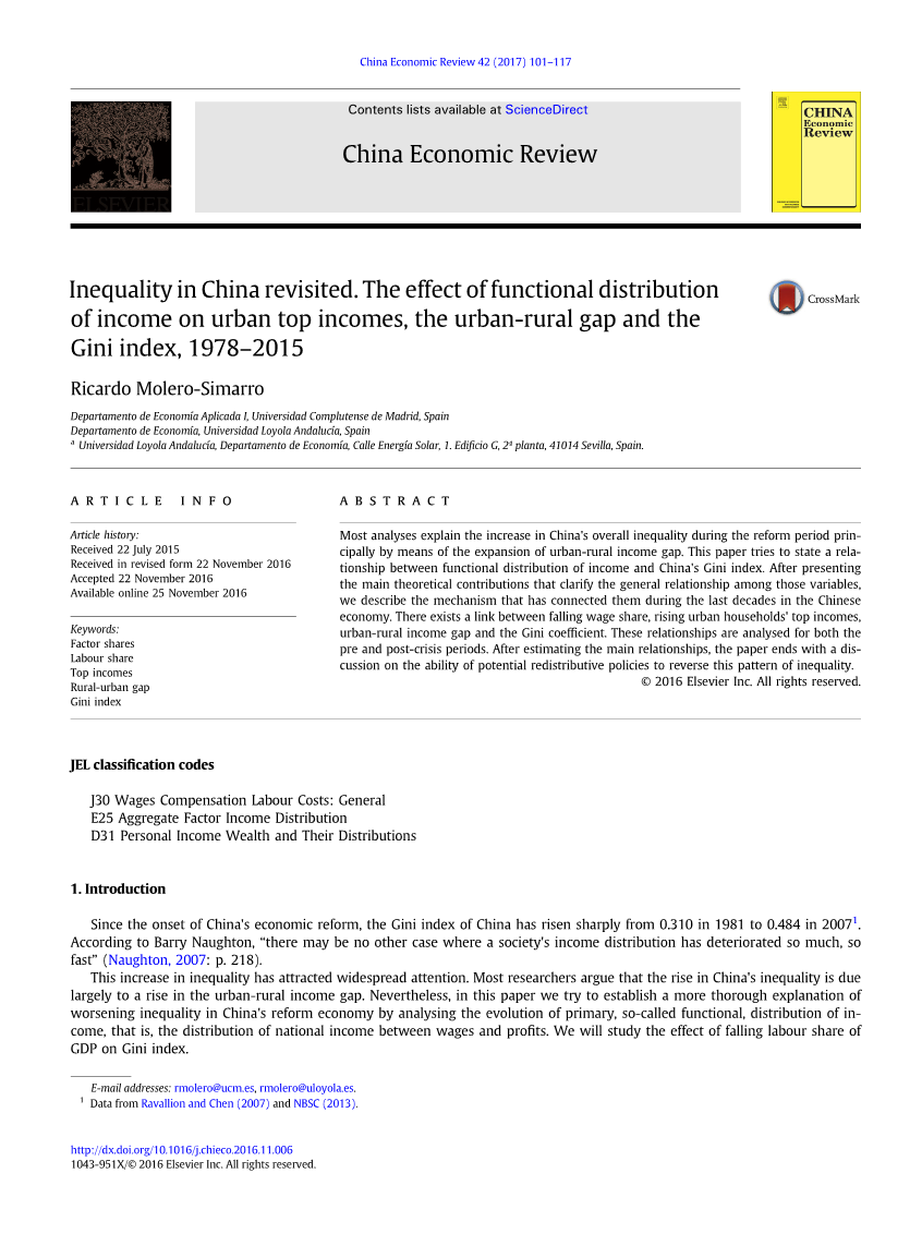 不公平在中国再现,功能性收入分配对中国城乡收入差距、城市最高收入及基尼系数的影响 ——基于1978-2015年的研究外文翻译资料